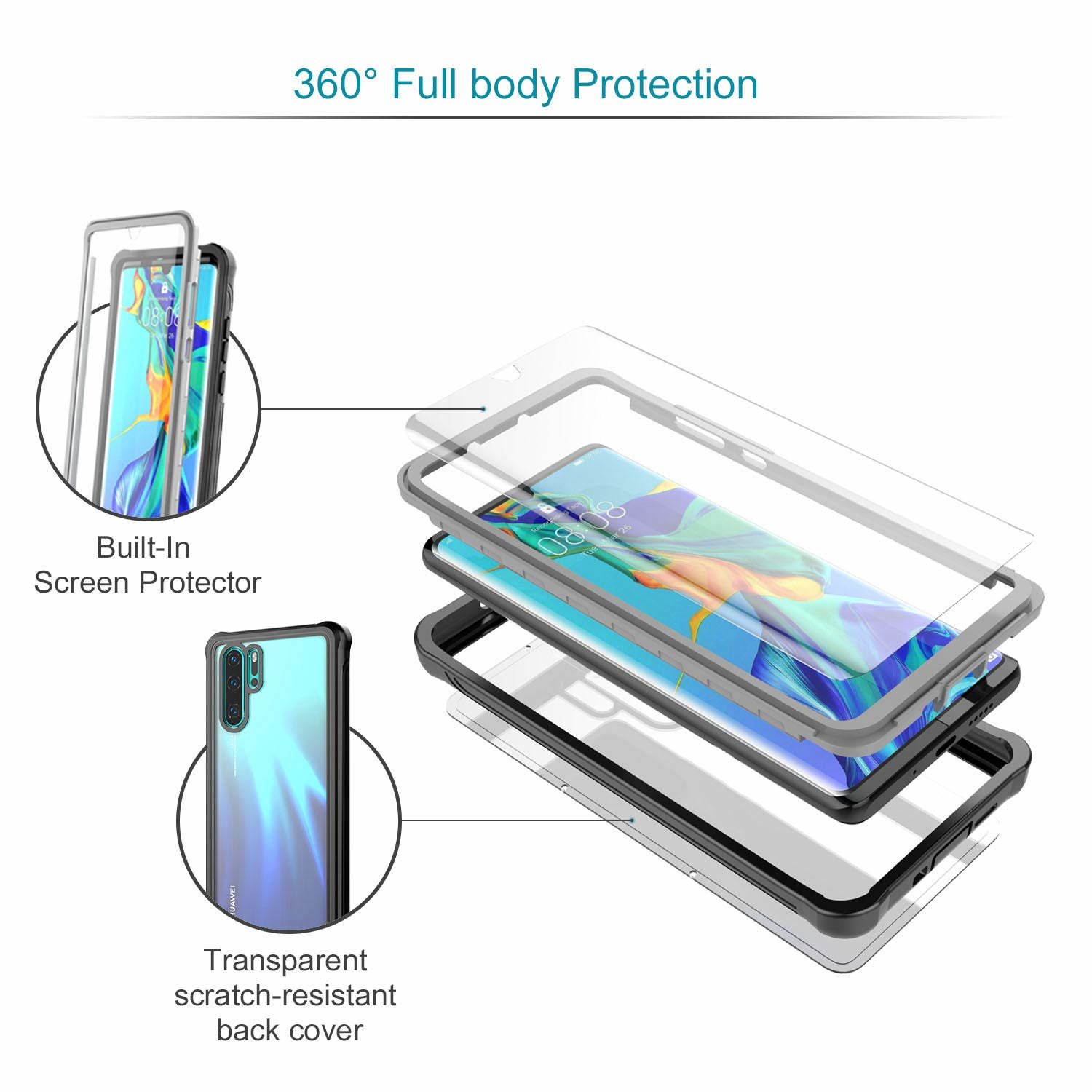 | Libellé | Coque pour Huawei P30 Pro avec protecteur d'écran Noir/Gris |