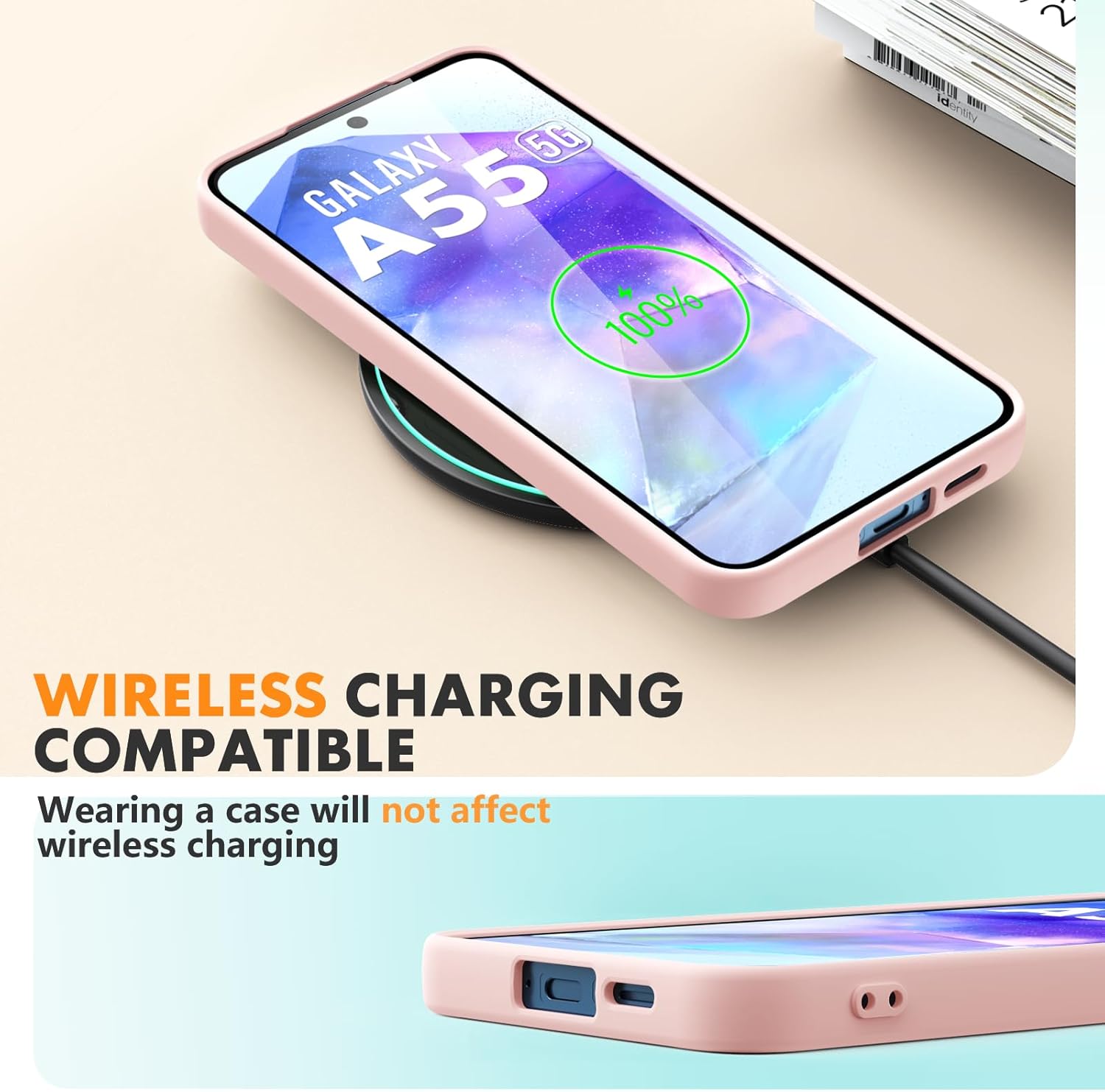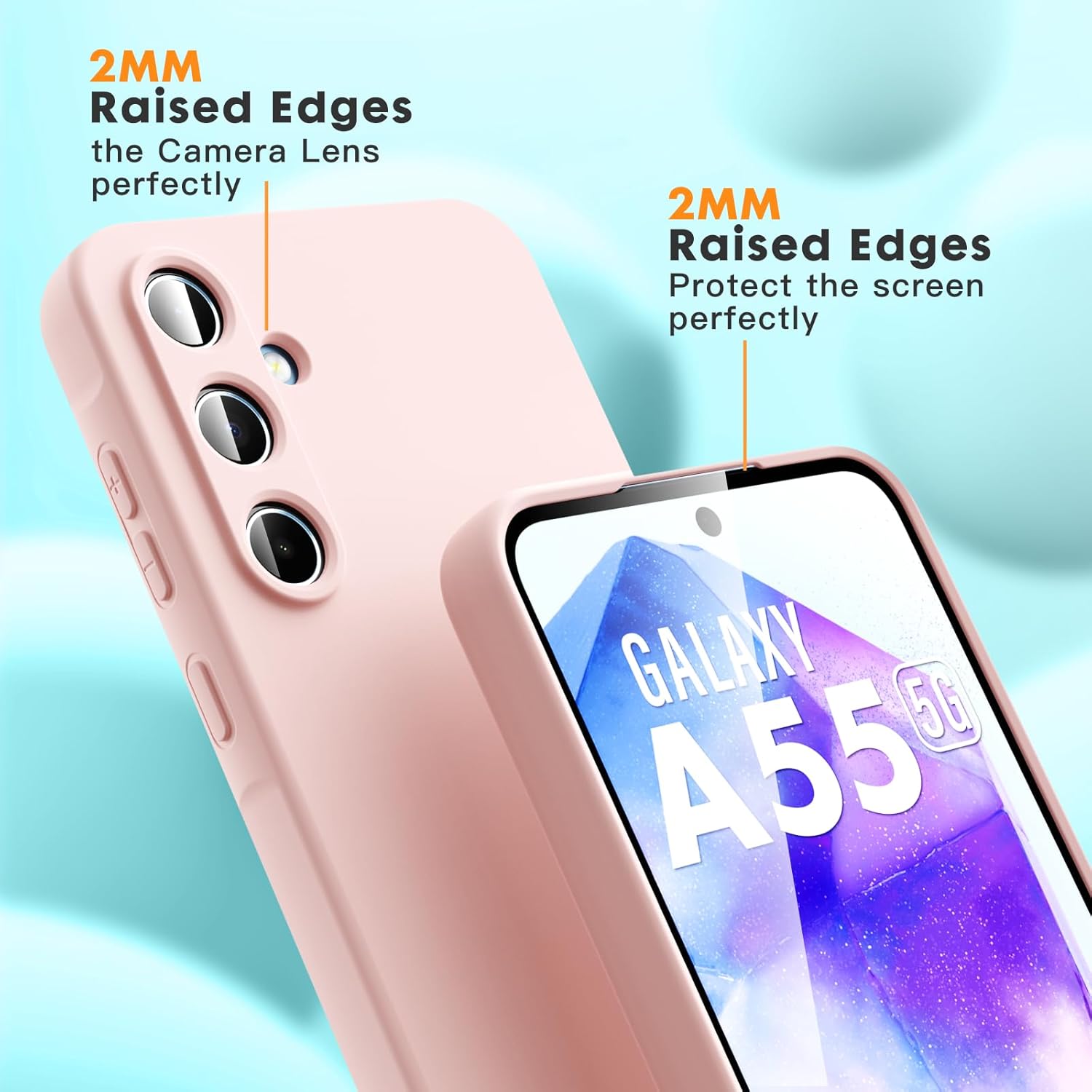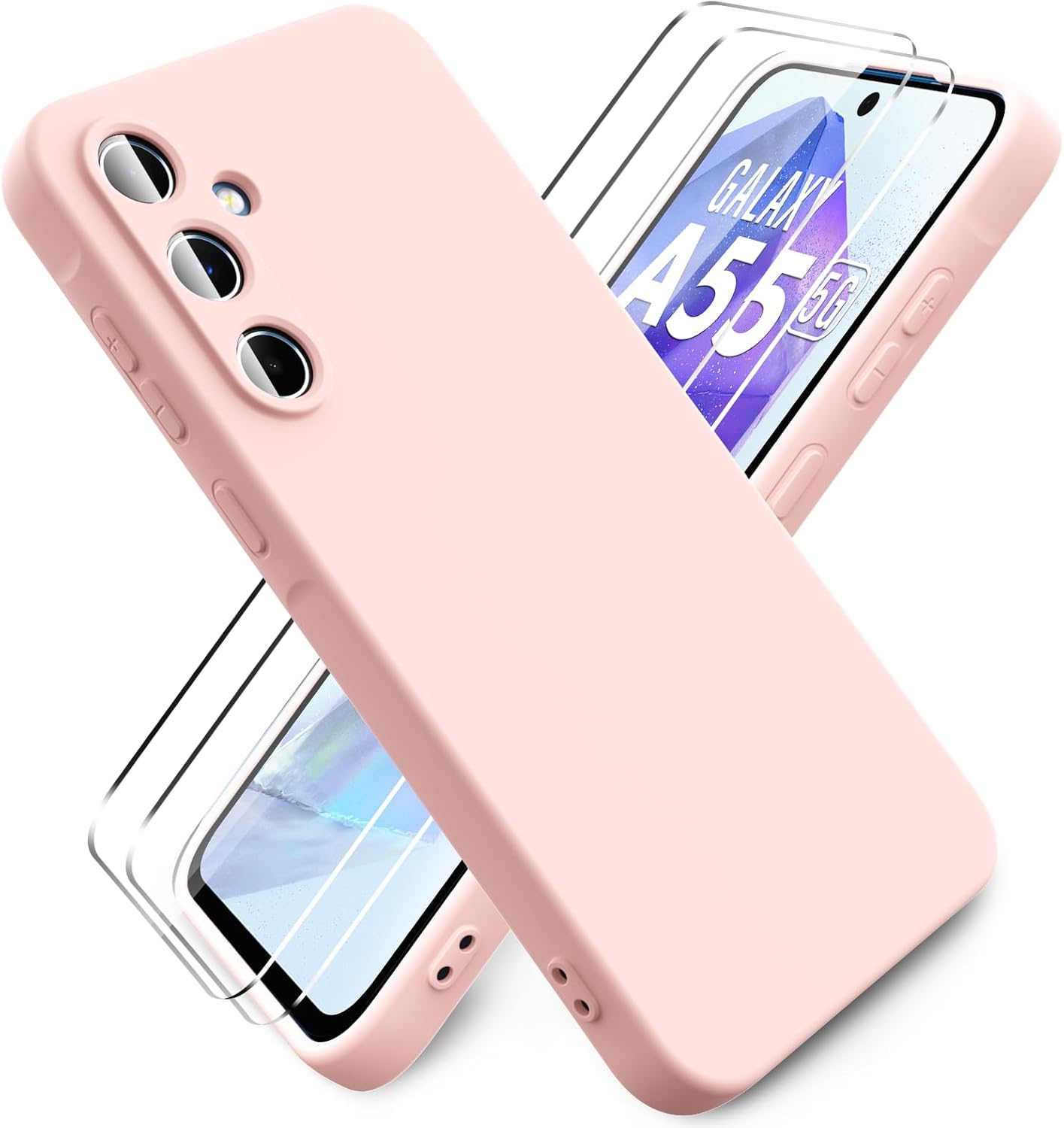 Compatible avec Samsung Galaxy A55 5G (Ecran 6,6 pouces). Pack Coque arriere en silicone souple Rose + 2 Protections Ecran Verre avec Lingettes nettoyantes.