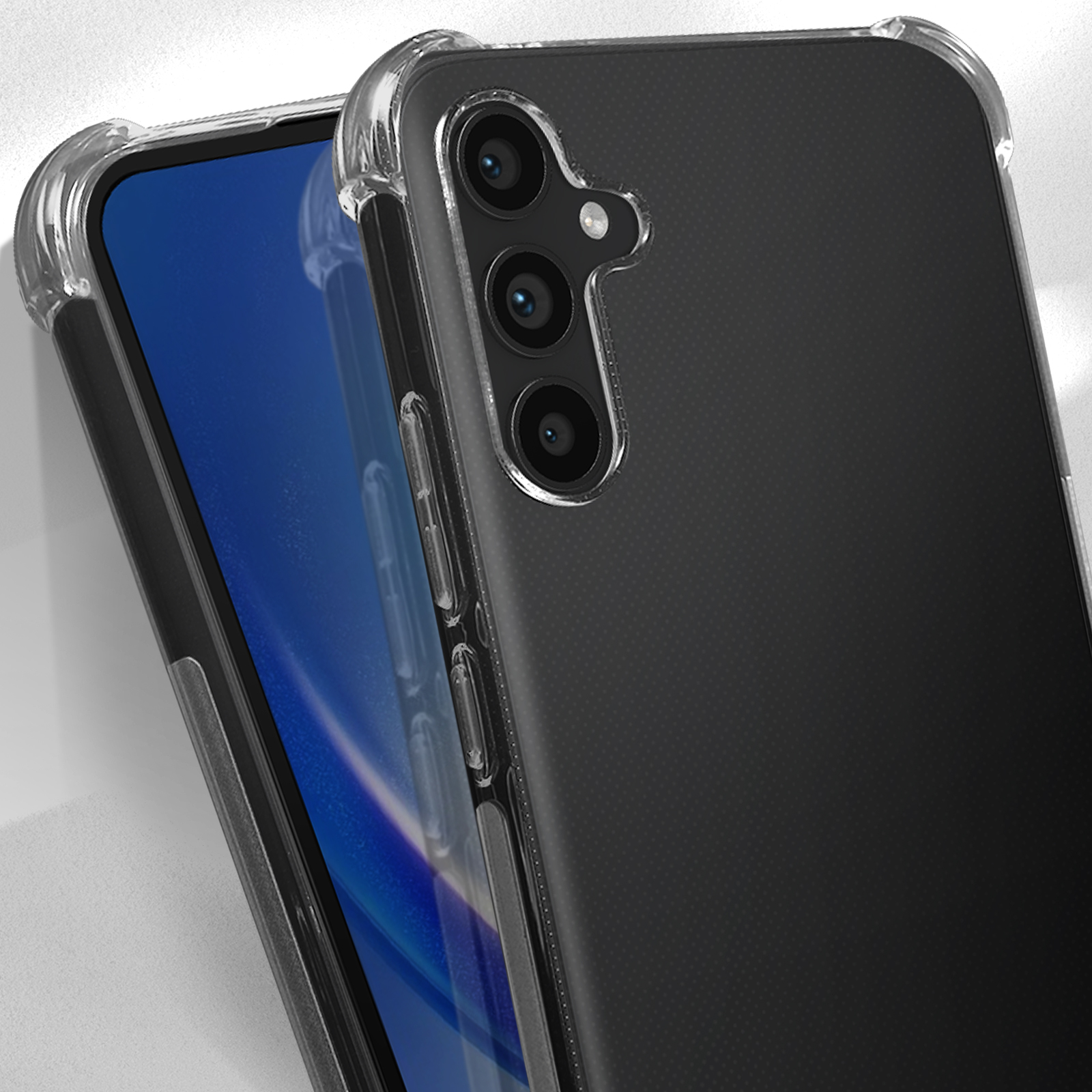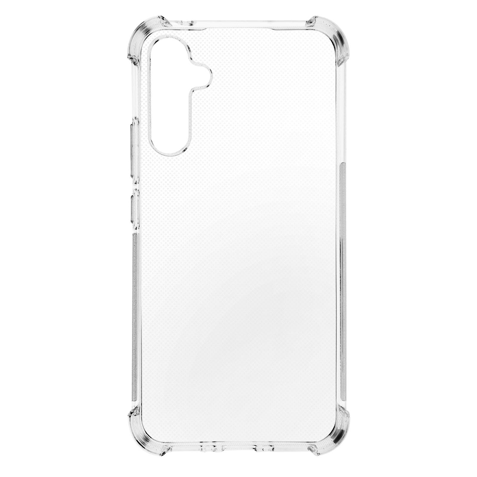 Coque pour Samsung Galaxy A34 5G. Élaborée en silicone gel souple. Coins renforcés pour une meilleure absorption des chocs. Dos transparent. Design léger pour une prise en main aisée et un rangement facile. Fonctionnalités accessibles.