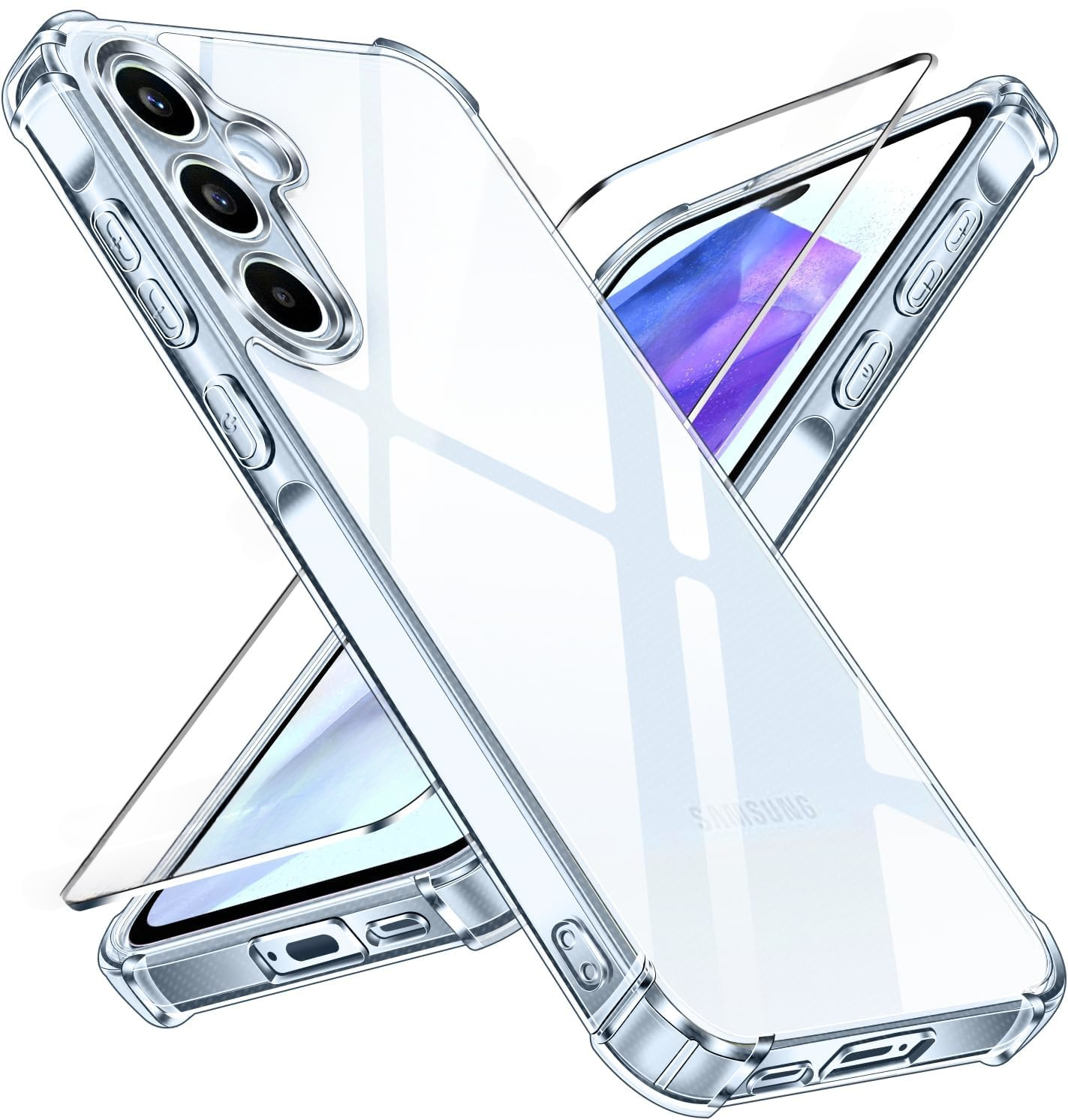 Compatible avec Samsung Galaxy A55 5G (Ecran 6,6 pouces). Pack Coque arrire en silicone souple Transparente avec Coins Renforcs + Protection Ecran Verre avec Lingette nettoyante.