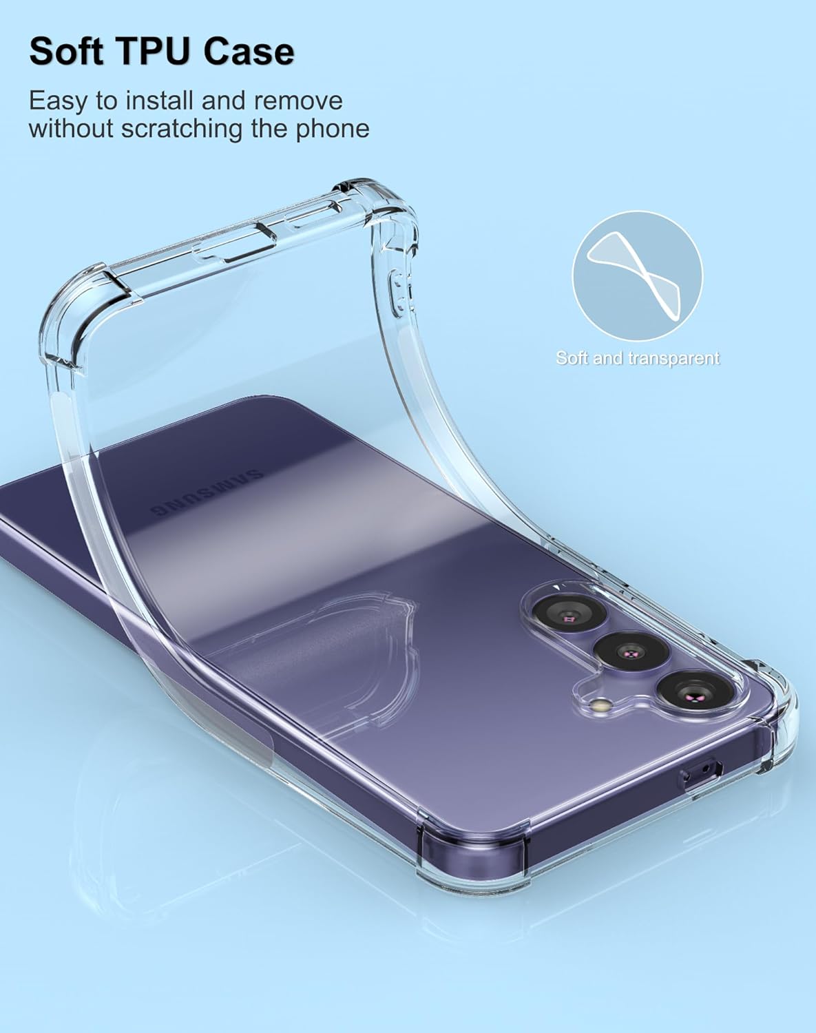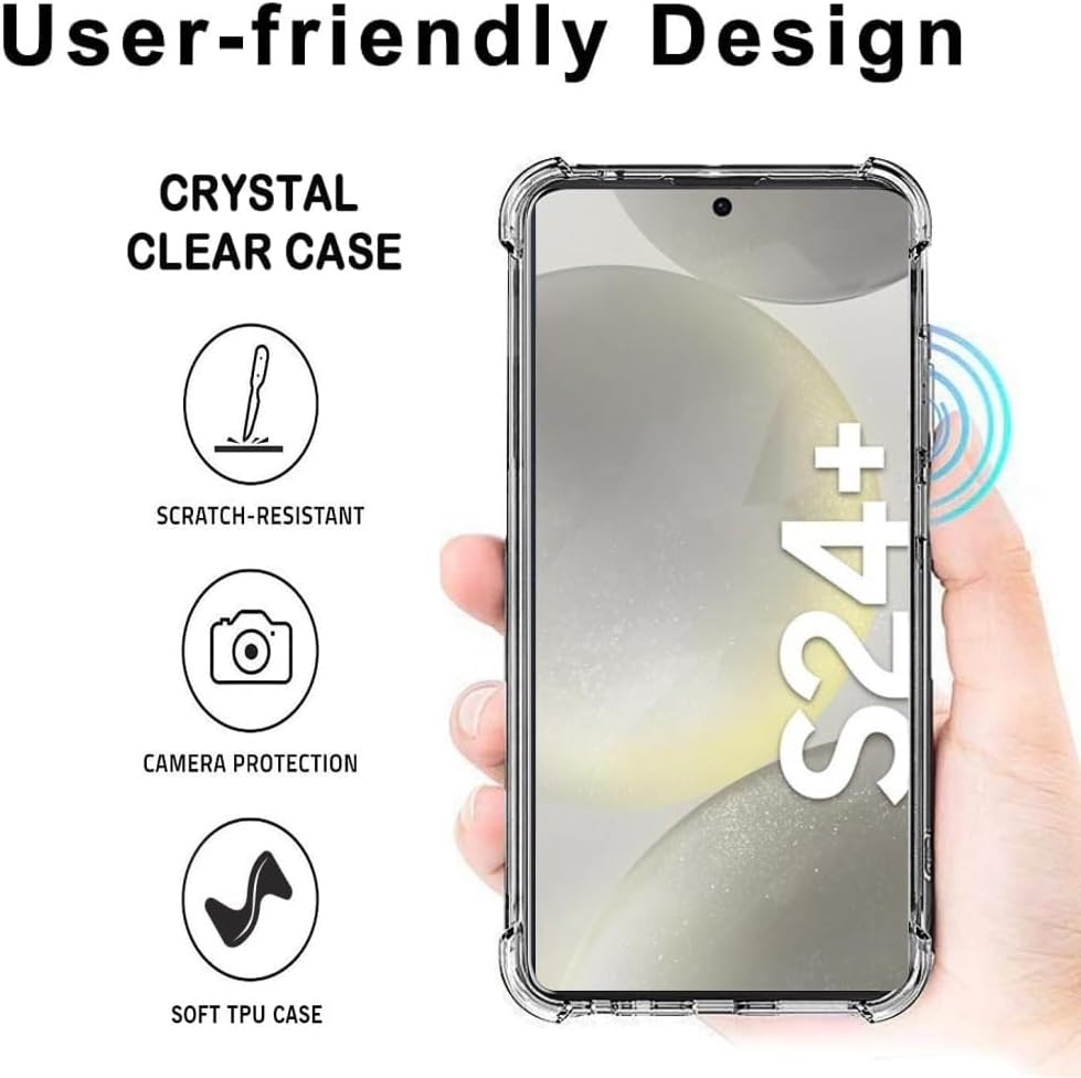 Compatible avec Samsung Galaxy S24 Plus (cran 6,7 pouces). Pack Coque arrire en silicone souple Transparente avec Coins Renforcs.Marque : Little Boutik\u00a9