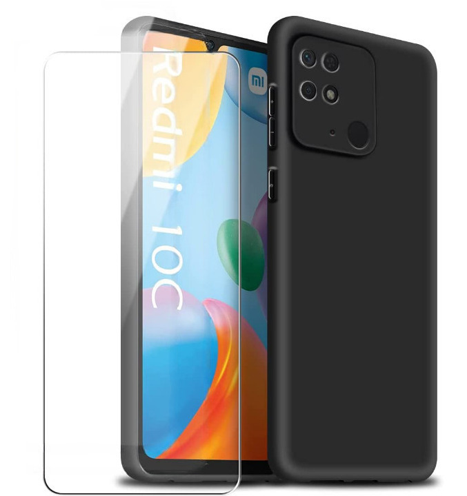 Coque Pour Xiaomi Redmi 10C Silicone Noir + Verre Trempe Little Boutik®