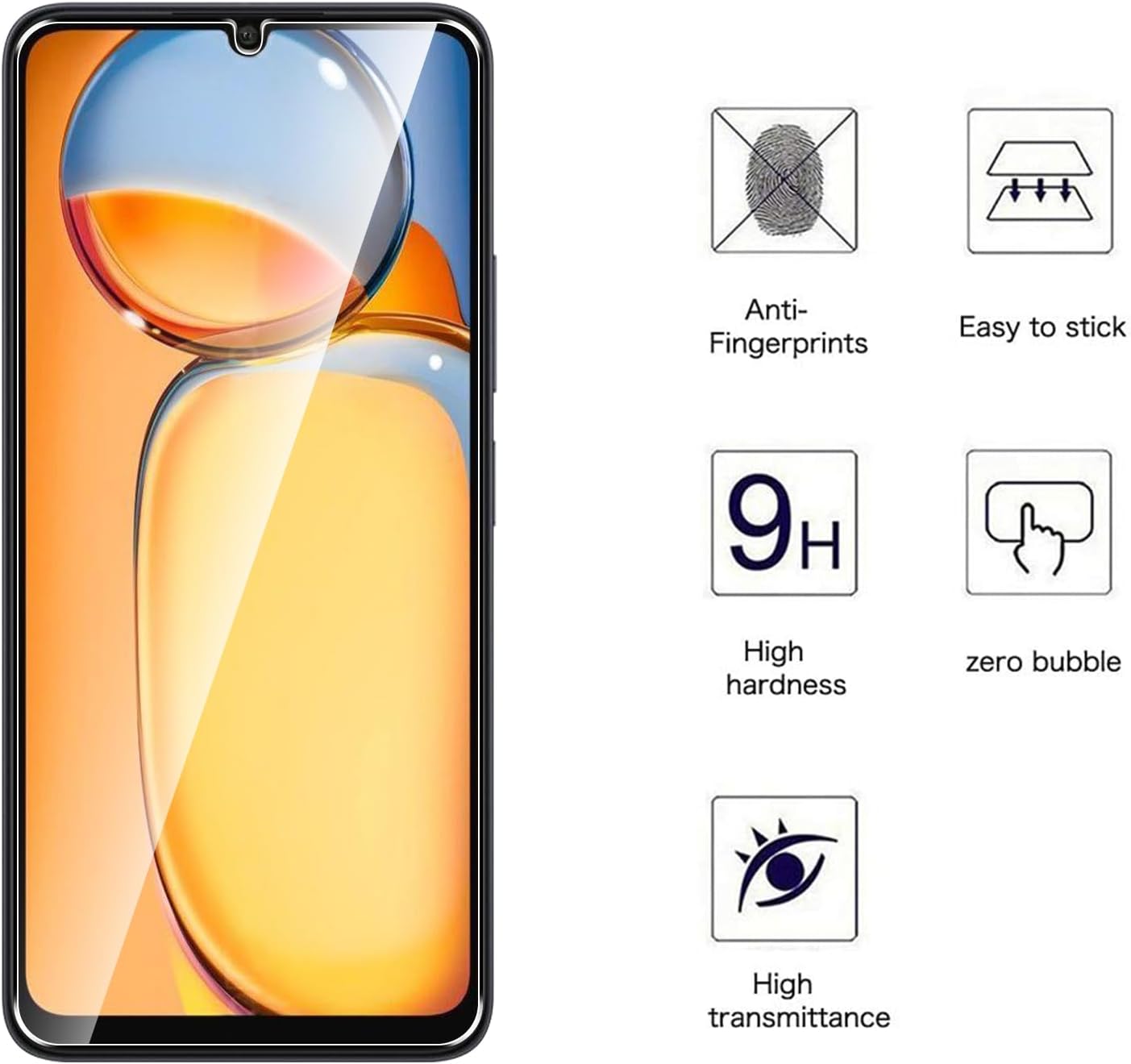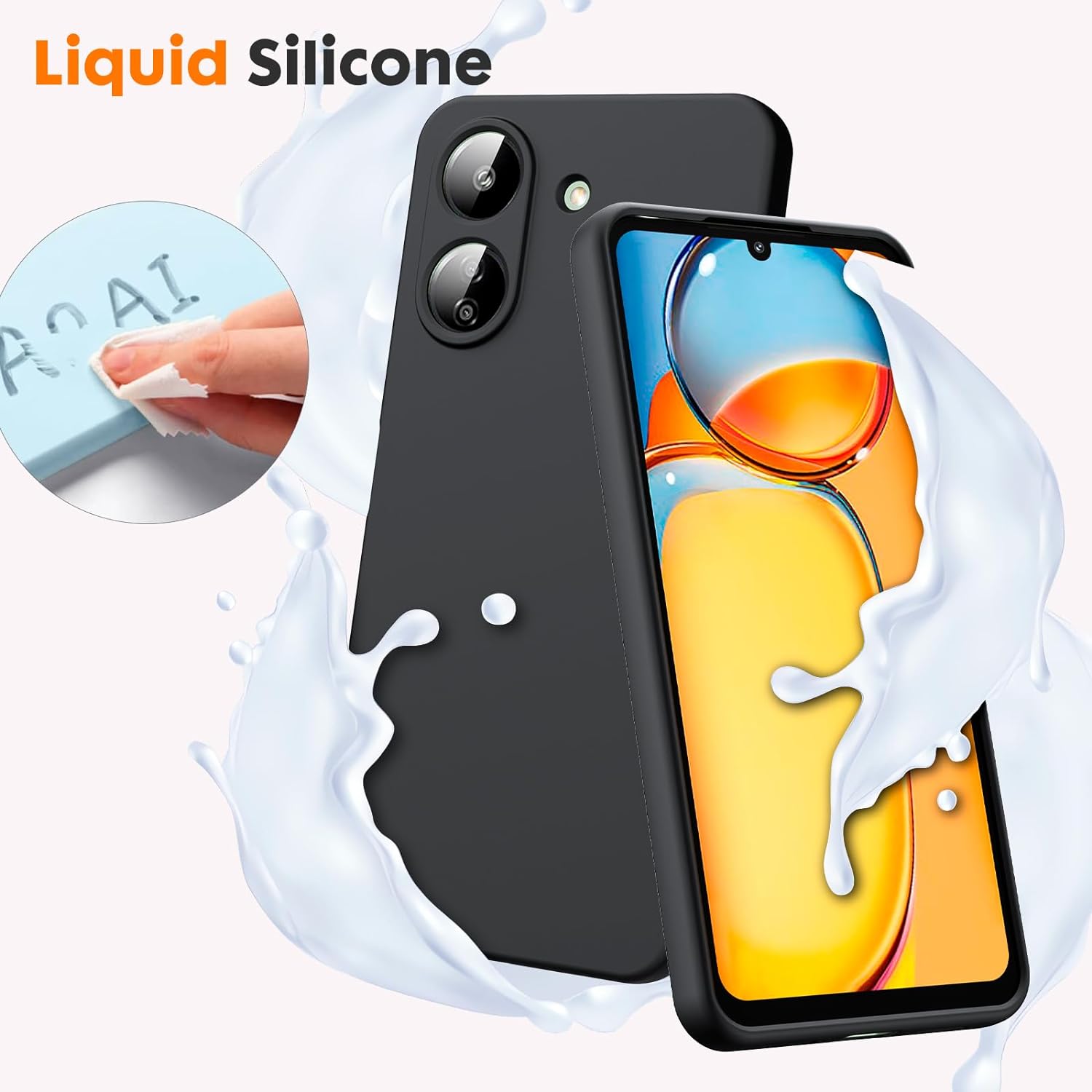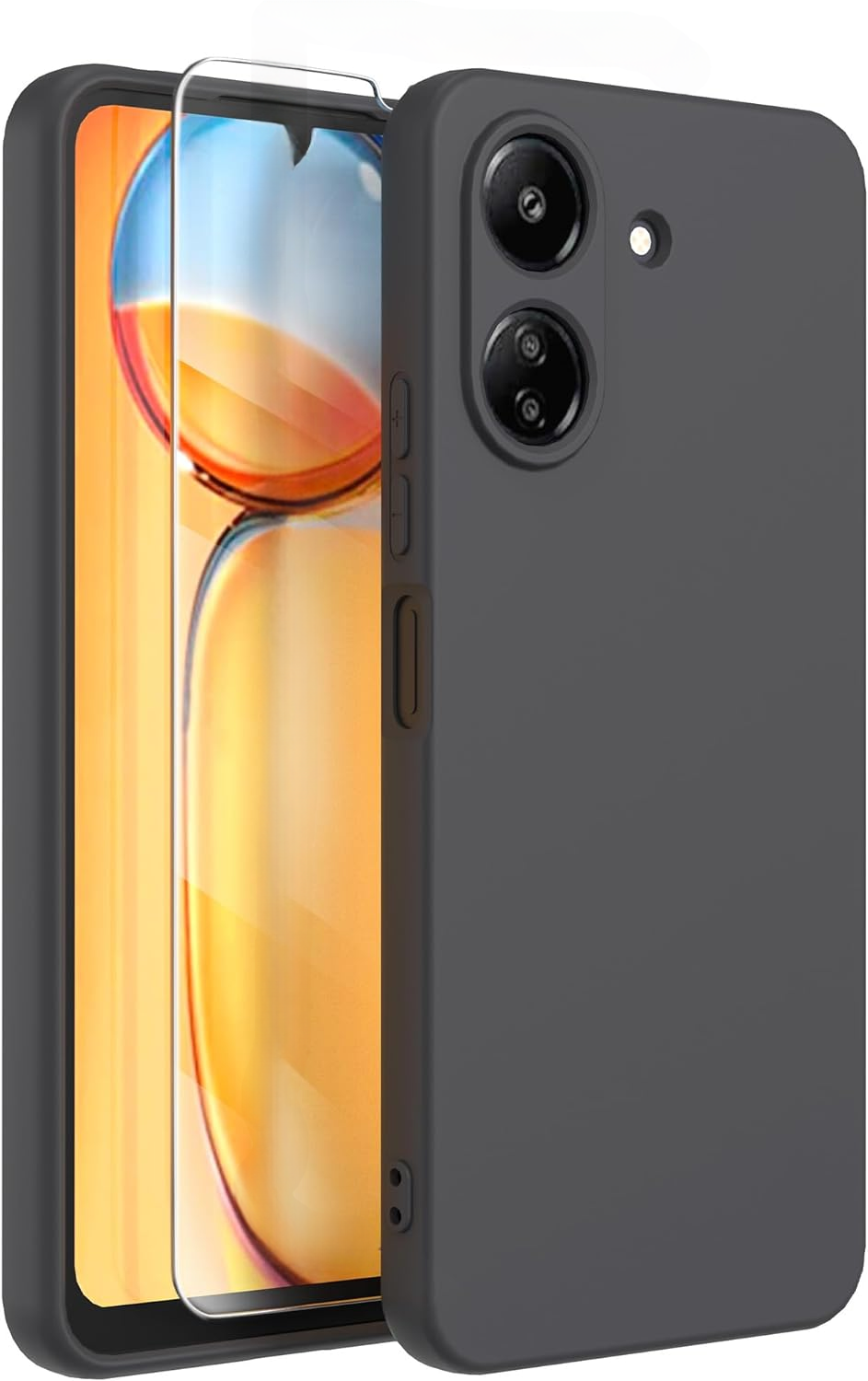 Compatible avec Xiaomi Redmi 13C / Poco C65 (cran 6,74 pouces). Pack Coque arrire en silicone souple Noir + Protection Ecran Verre avec Lingette nettoyante.