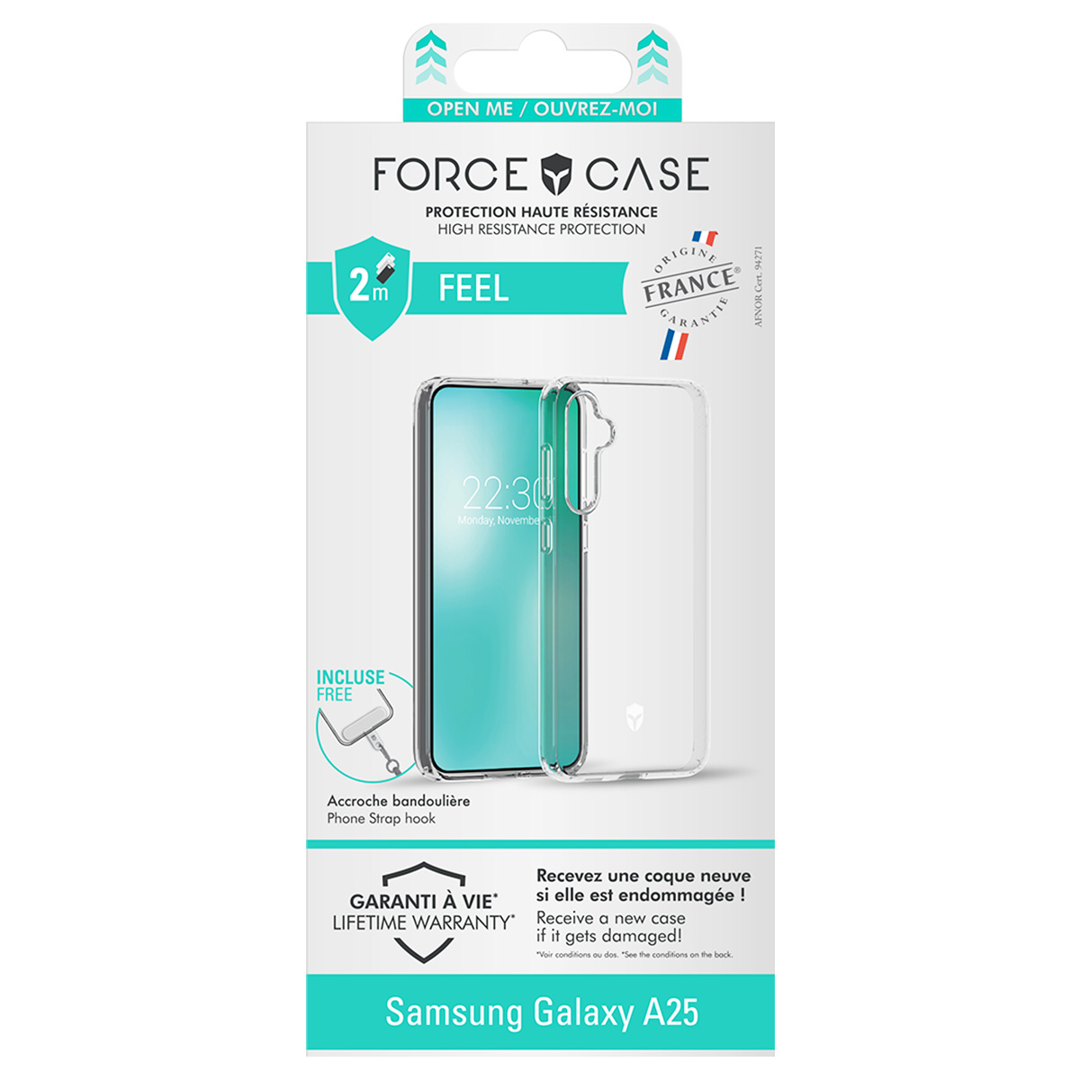 Libellé Coque renforcée Samsung Galaxy A25 FEEL Origine France Garantie 2m Transparente + Garantie à vie - Origine France Garantie Force Case