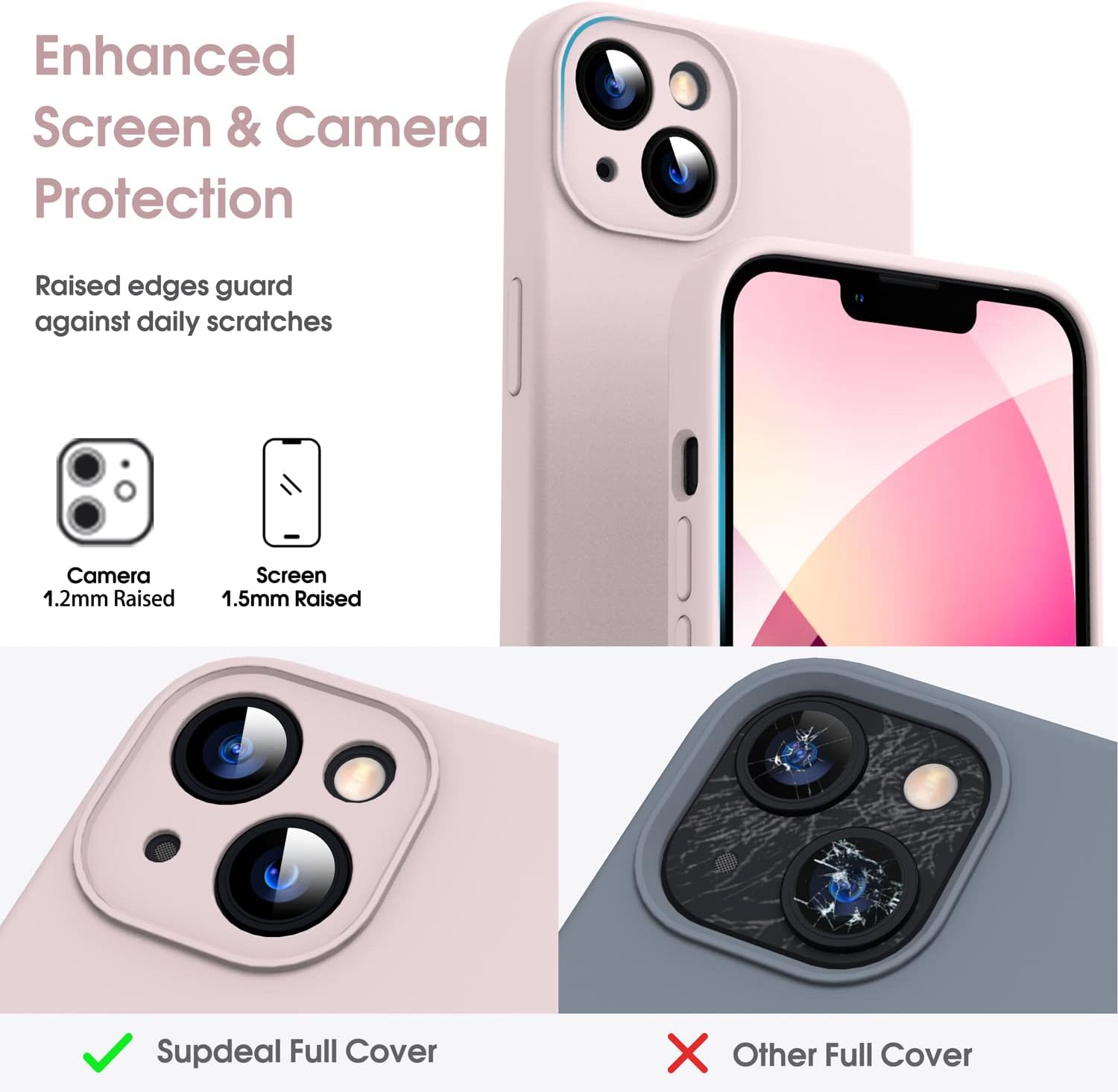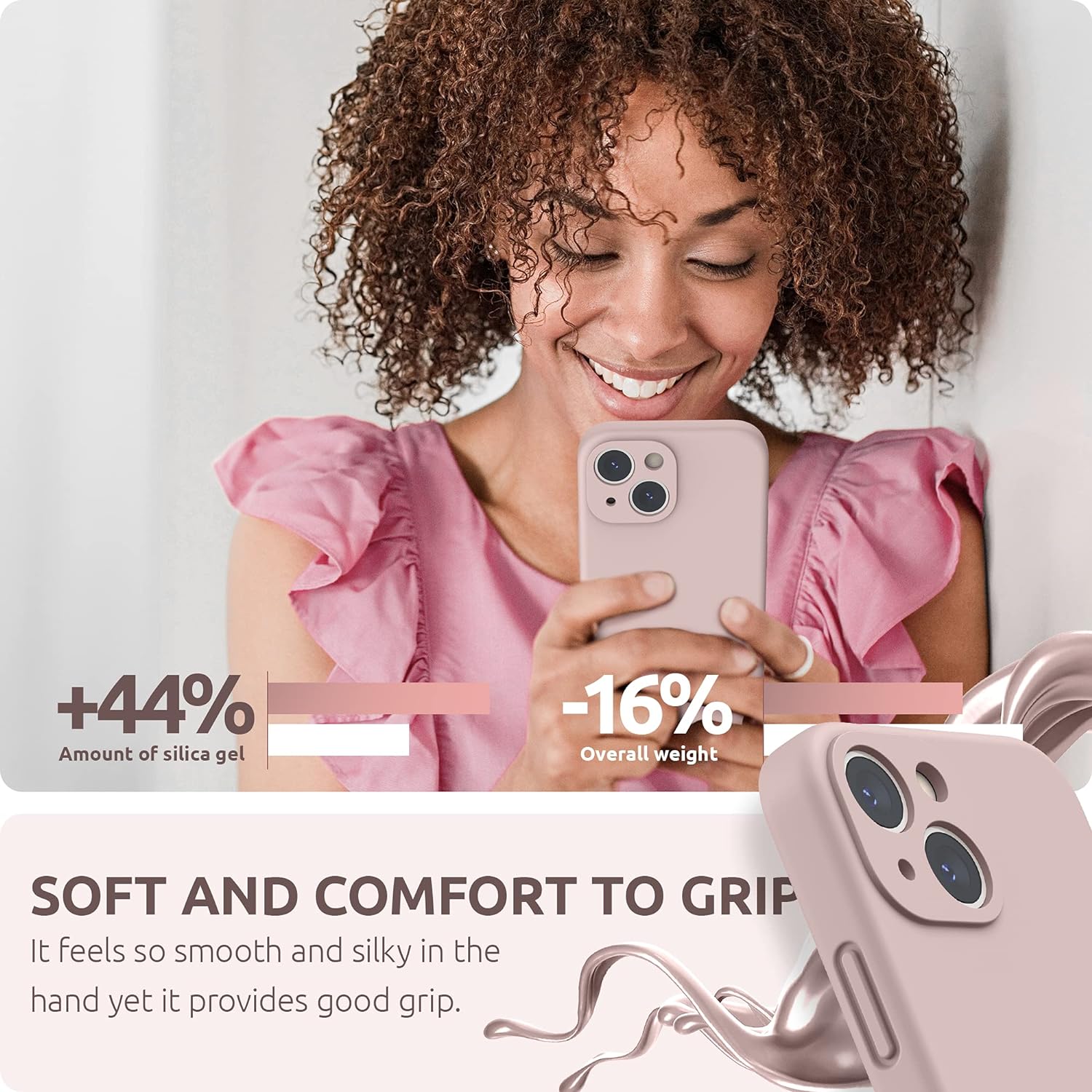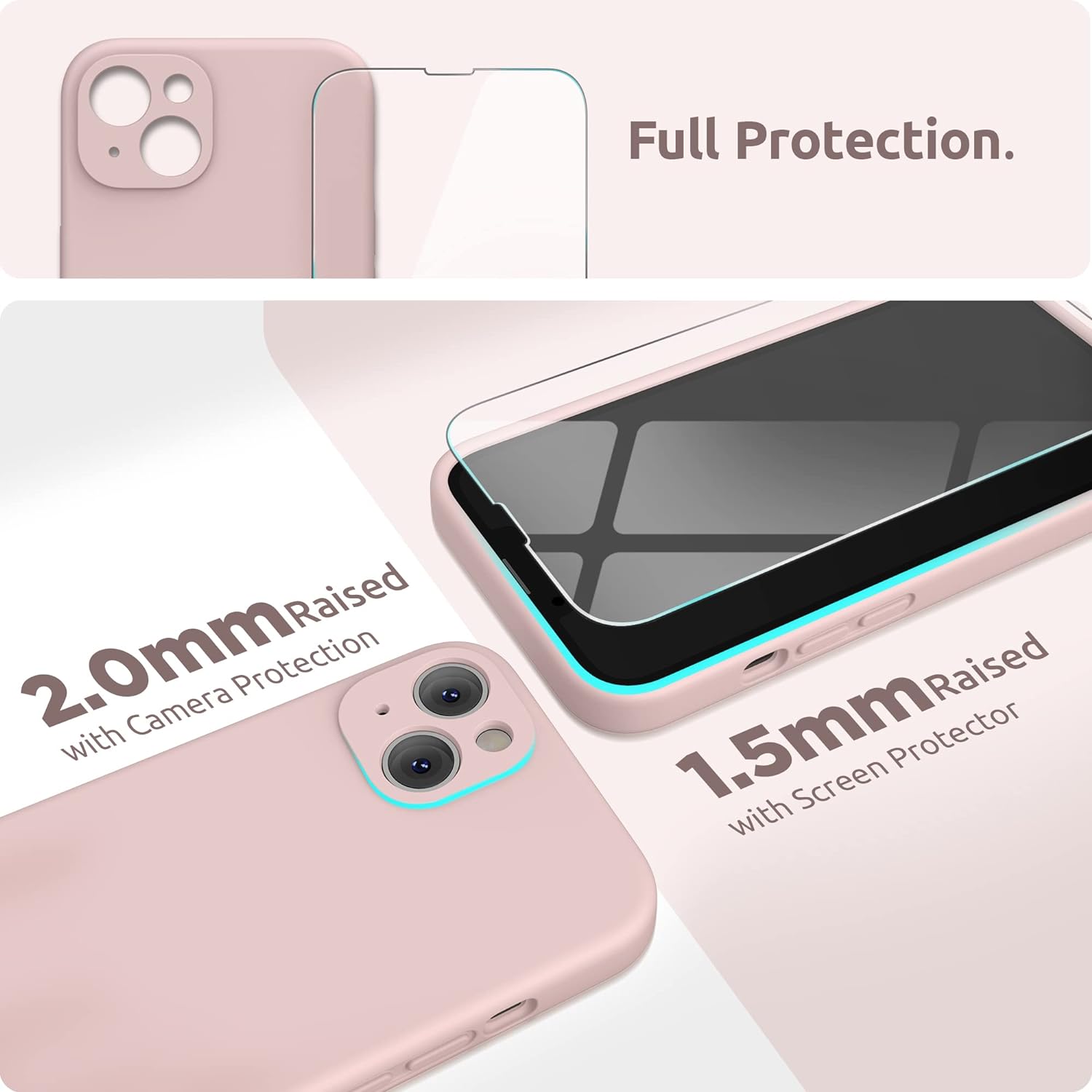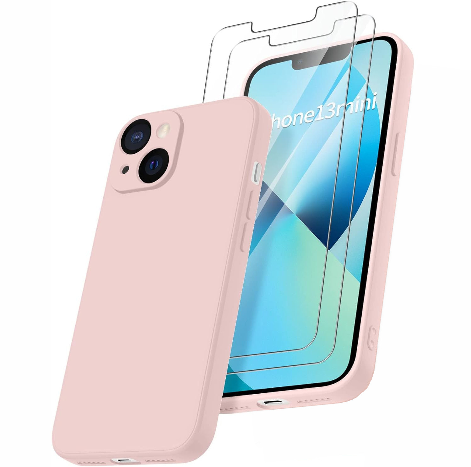 Compatible avec iPhone 13 Mini (écran 5,4 pouces). Pack de 1 Coque arrière en silicone souple Rose + 2 Verres Trempé avec Lingettes nettoyantes.