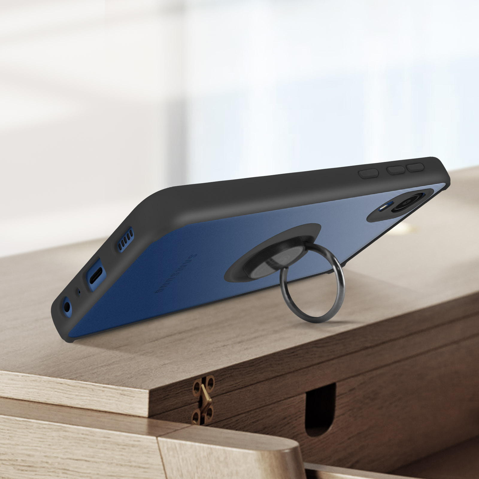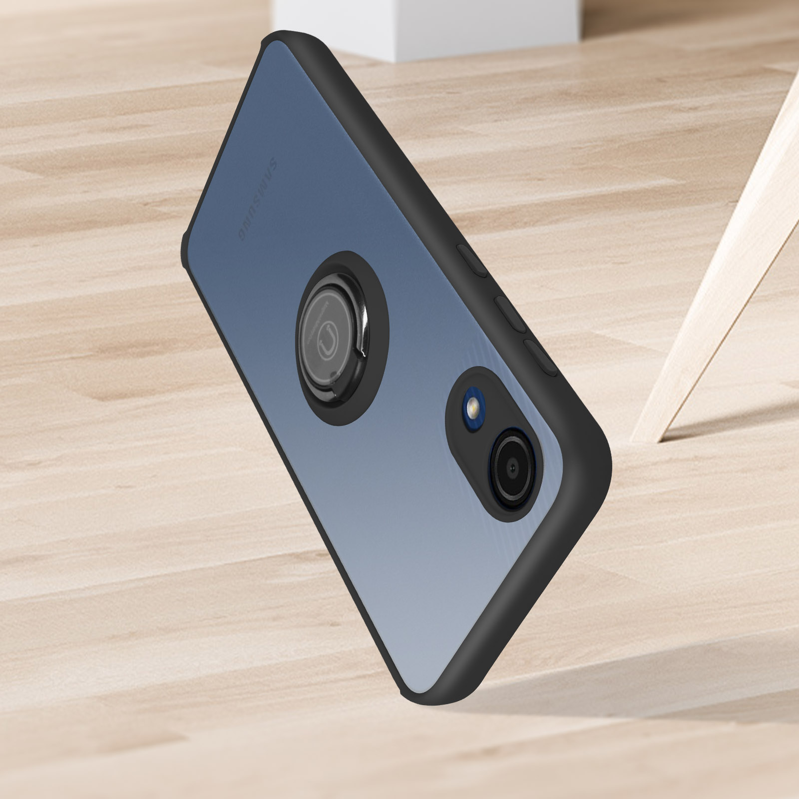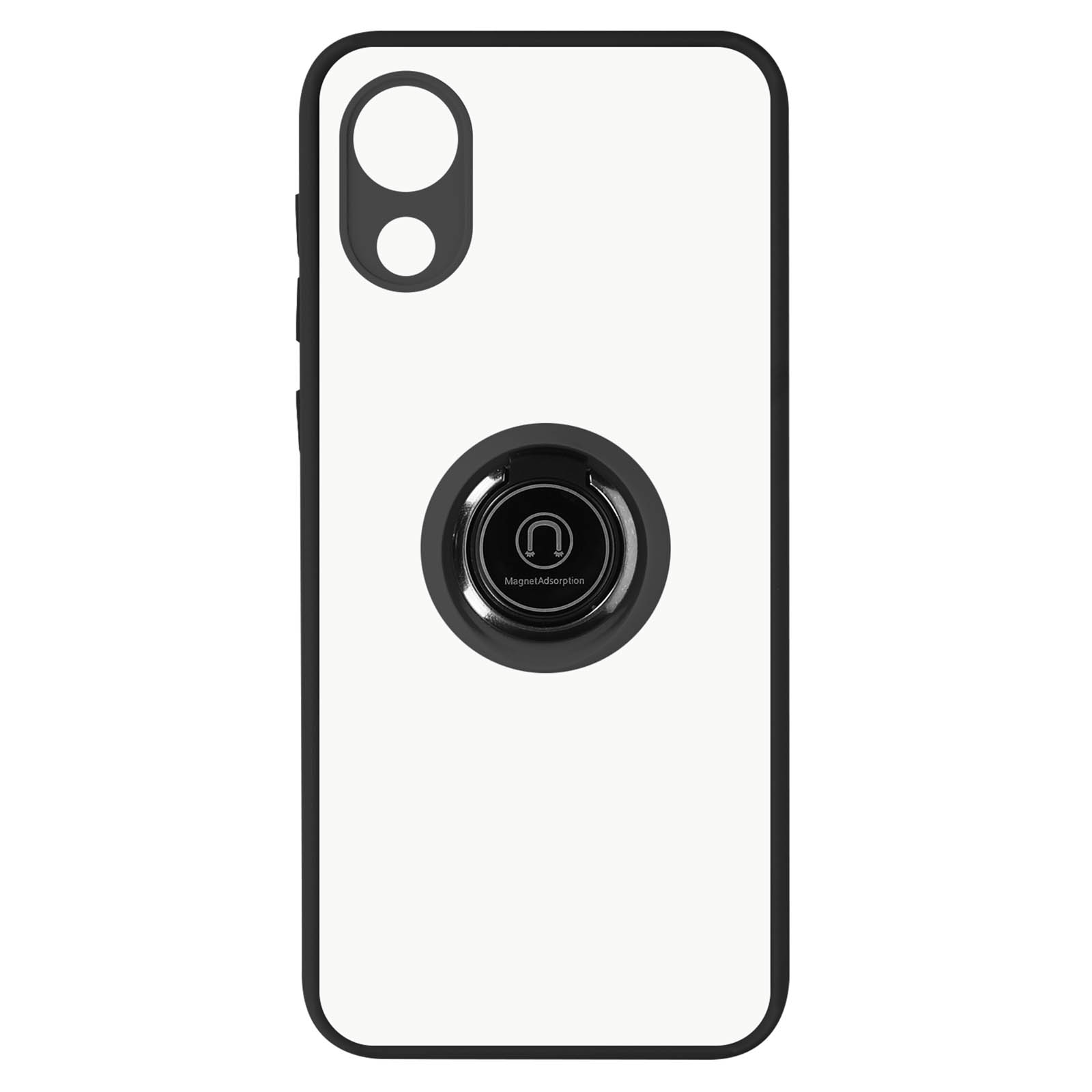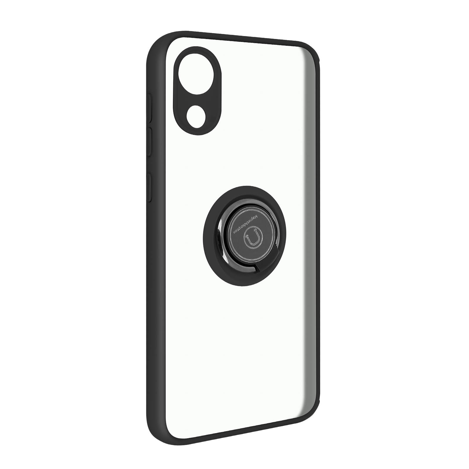 Coque pour Samsung Galaxy A03 Core. Conçue en polycarbonate + silicone gel. Bague de maintien pouvant se transformer en support vidéo. Finition métallique compatible avec un support magnétique. Dos mat anti-traces. Fonctionnalités accessibles.