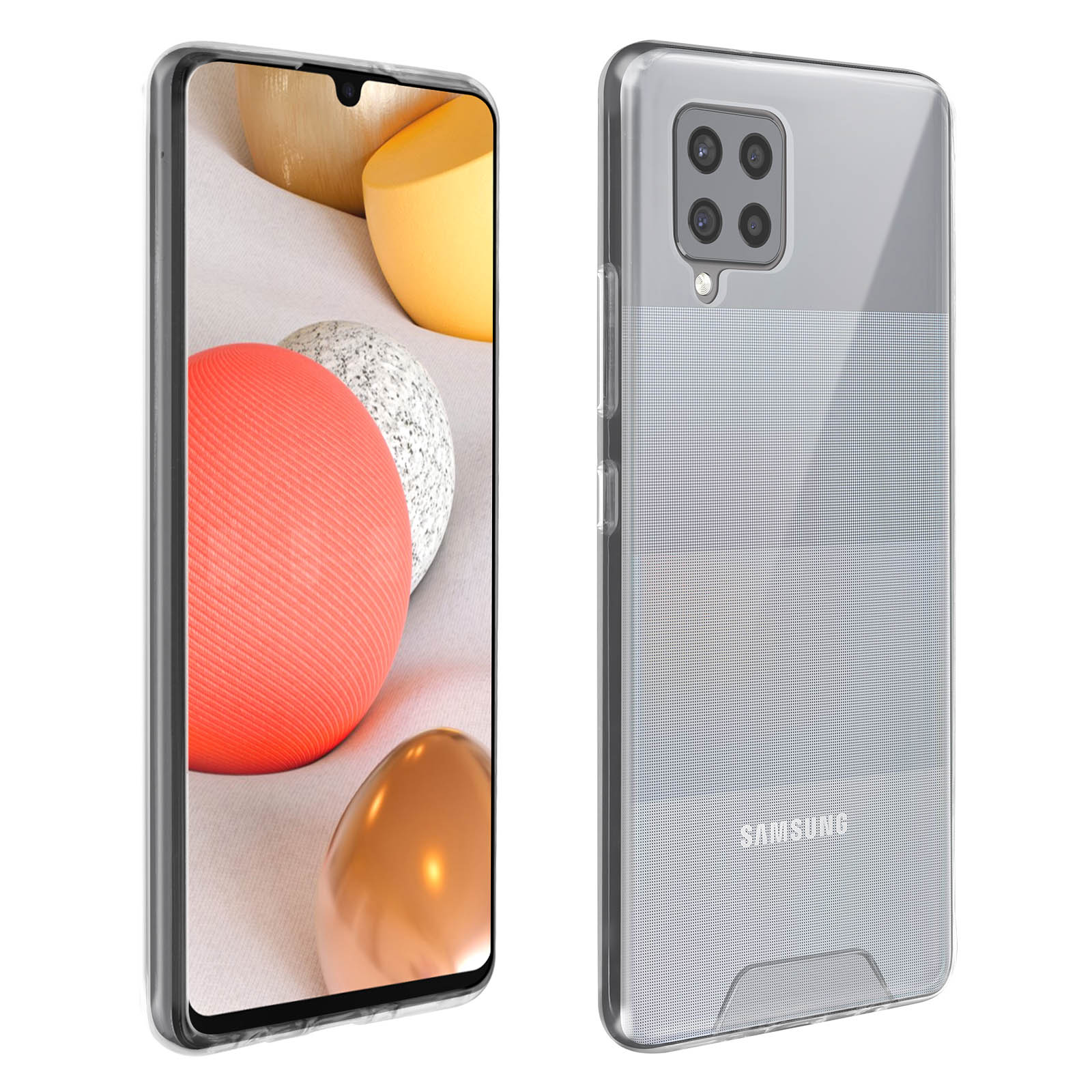 Coque Samsung Galaxy A42 5G ultra-transparente, Collection Cristal. Dos rigide en polycarbonate + contour bumper souple en silicone. Protection fine antichoc et anti-rayures. Design du smartphone conservé. Fonctionnalités accessibles.