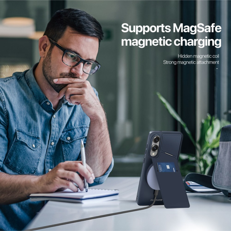 Découvrez notre coque magnétique haut de gamme pour Samsung Galaxy S25 Edge. Avec son support ajustable, ses poches pour cartes avec protection RFID, sa compatibilité MagSafe et son design élégant en cuir PU, elle offre une protection optimale et un style raffiné pour votre smartphone.