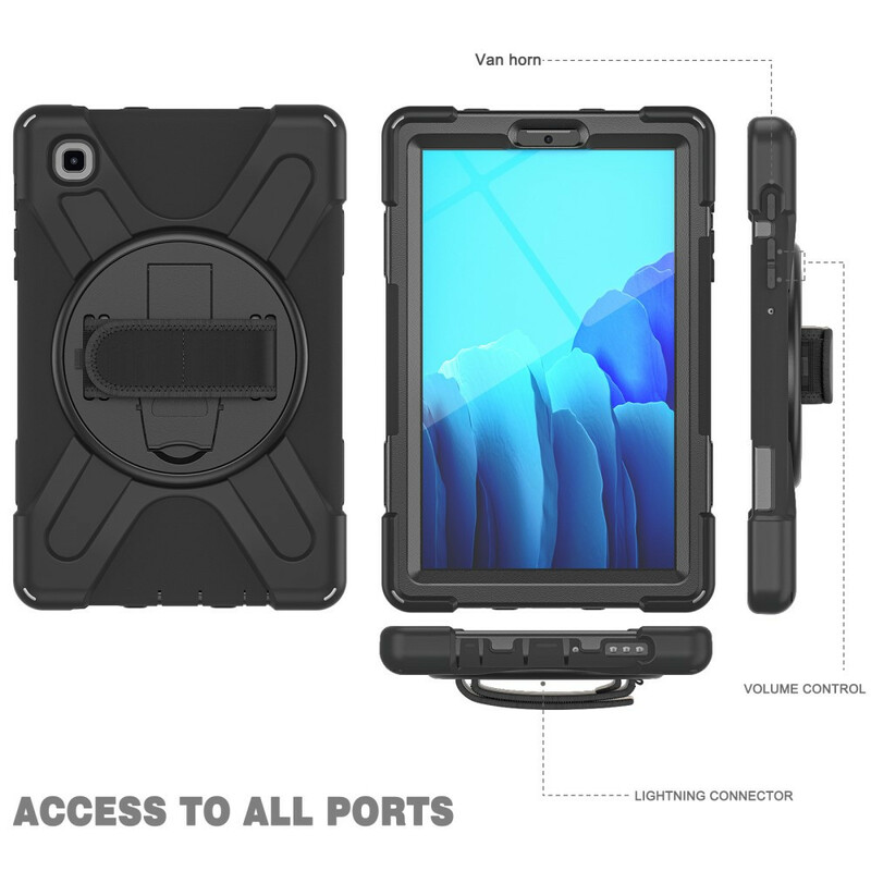 Votre Samsung Galaxy Tab A7 Lite est sécurisé avec cette coque en silicone et plastique multi-fonctions qui vient avec une bandoulière.