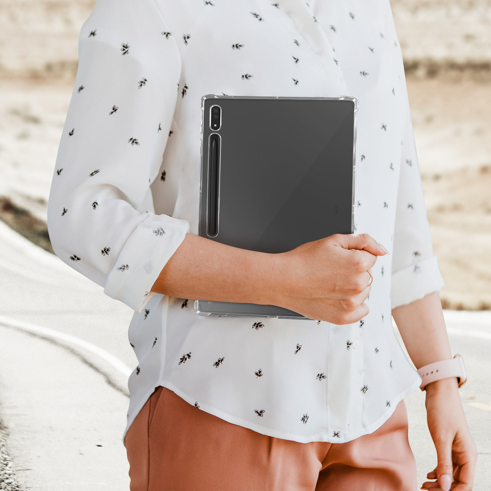 Coque Samsung Galaxy Tab S8 Ultra. Élaborée en silicone gel souple. Coins renforcés pour une meilleure absorption des chocs. Dos transparent. Design léger pour une prise en main aisée et un rangement facile. Fonctionnalités accessibles.