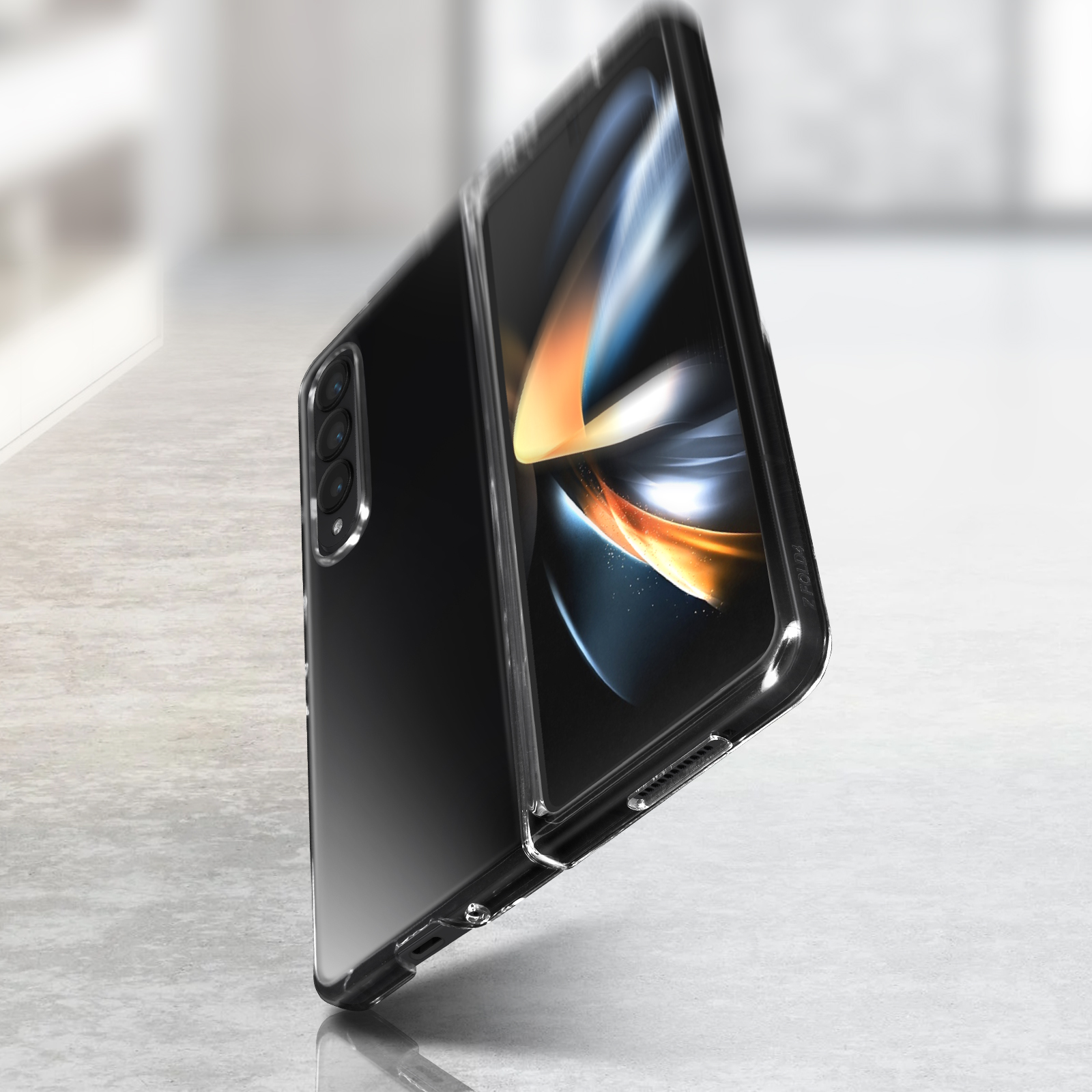 Coque de protection pour Samsung Galaxy Z Fold 4 5G. Conçue en polycarbonate rigide. Design du mobile conservé. Fine et légère, prise en main agréable. Conception en deux parties pour s'adapter au design du mobile. Fonctionnalités accessibles.