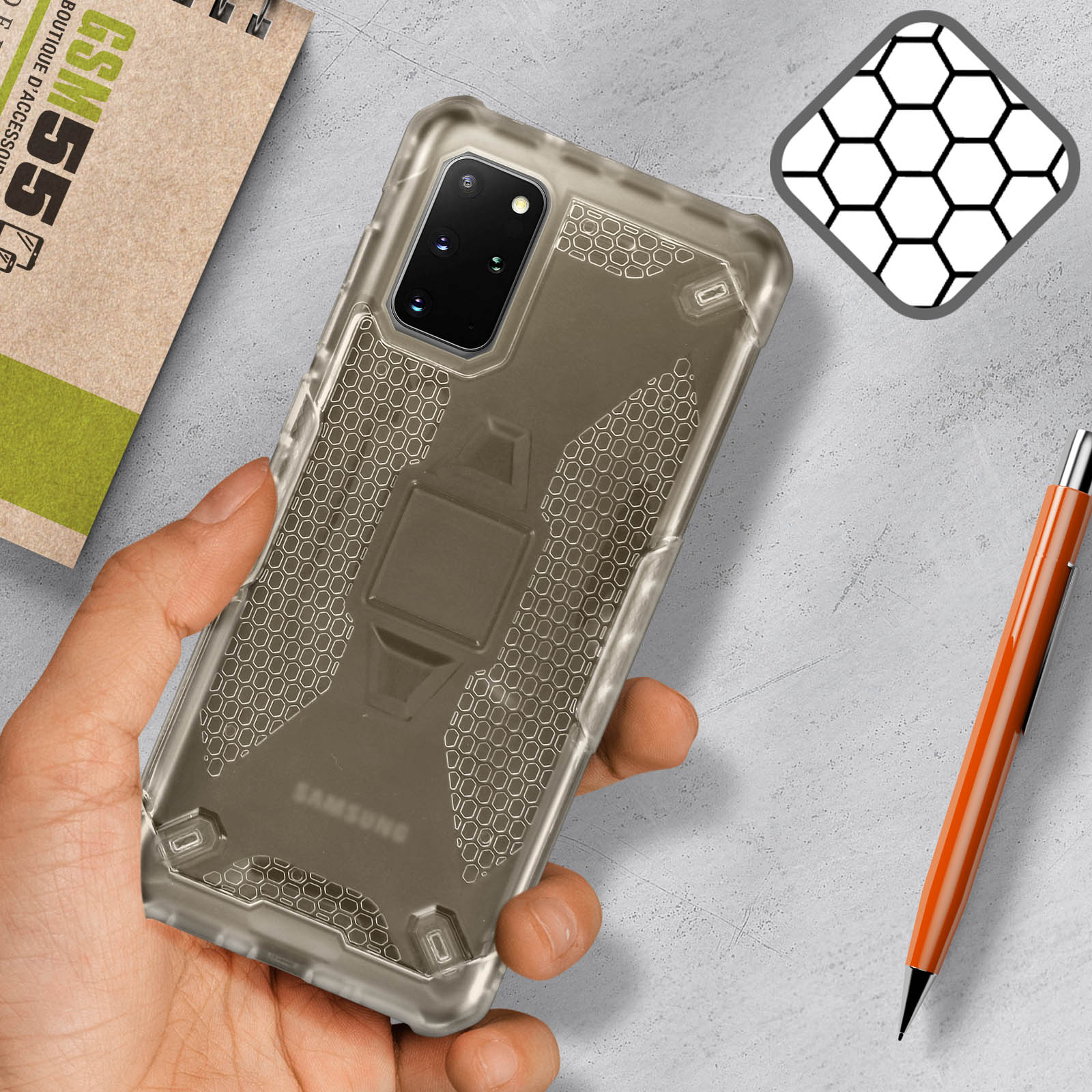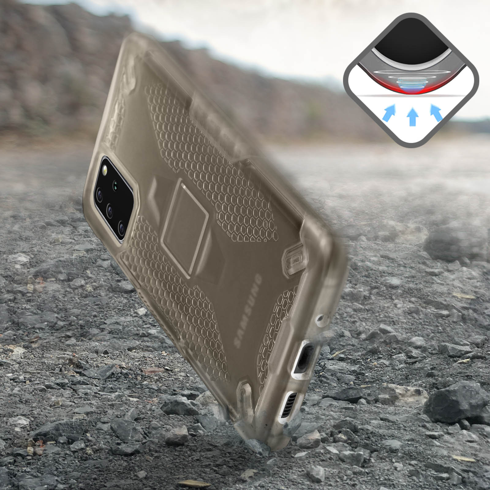 | Libellé | Coque Samsung S20 Plus Antichoc Silicone Nid d'abeille Renforcé Noir Translucide |
