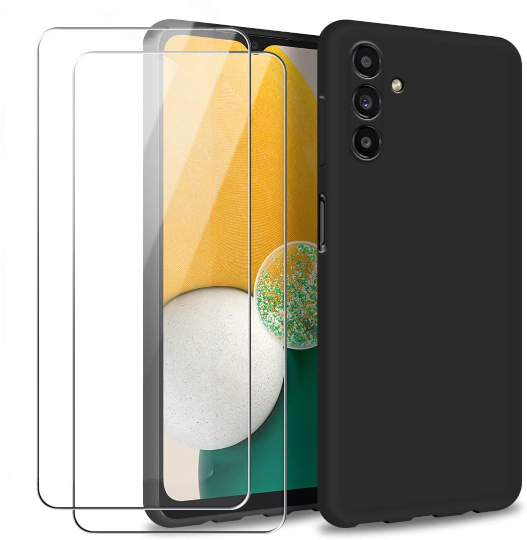 Compatible avec Samsung Galaxy A04S / A13 5G (écran 6,5 pouces). Pack Coque arrière en silicone souple Noire + 2 Protections Ecran Verre avec Lingettes nettoyantes.