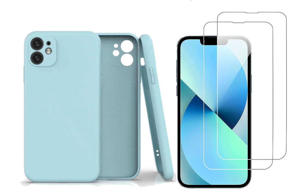 Coque Silicone Pour iPhone 13 Couleur Bleu Protection Objectif Appareil Photo + 2 Verres Trempe Protecti