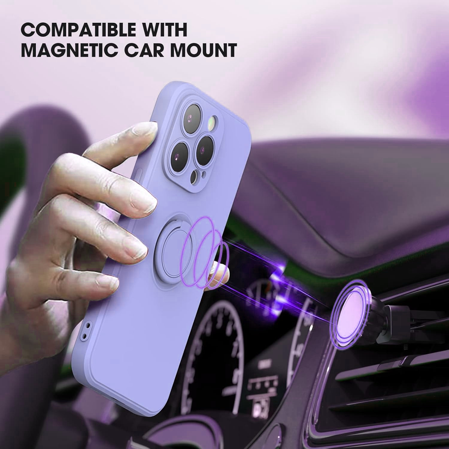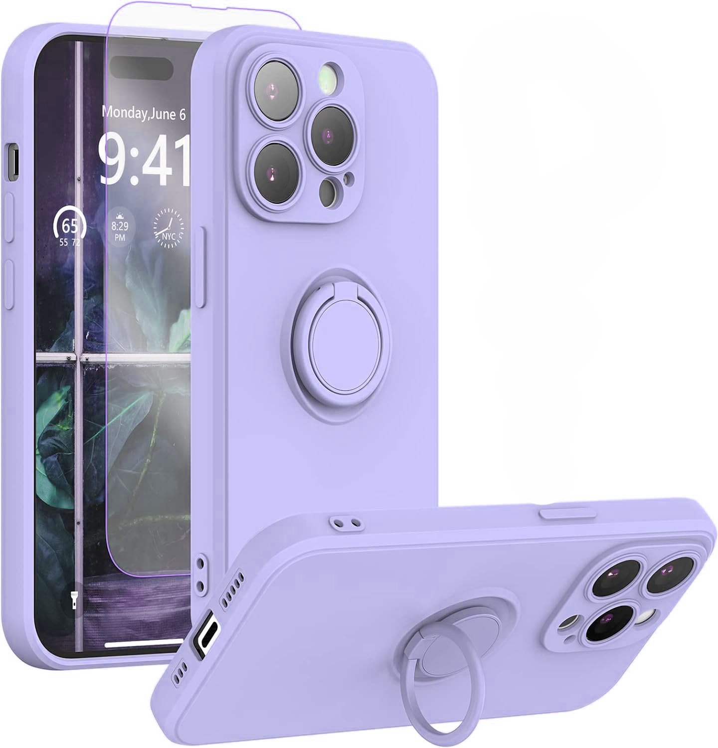 Coque Silicone Pour iPhone 14 Pro Max Couleur Violet Avec Anneau Support + Verre Trempe Protection Ecran