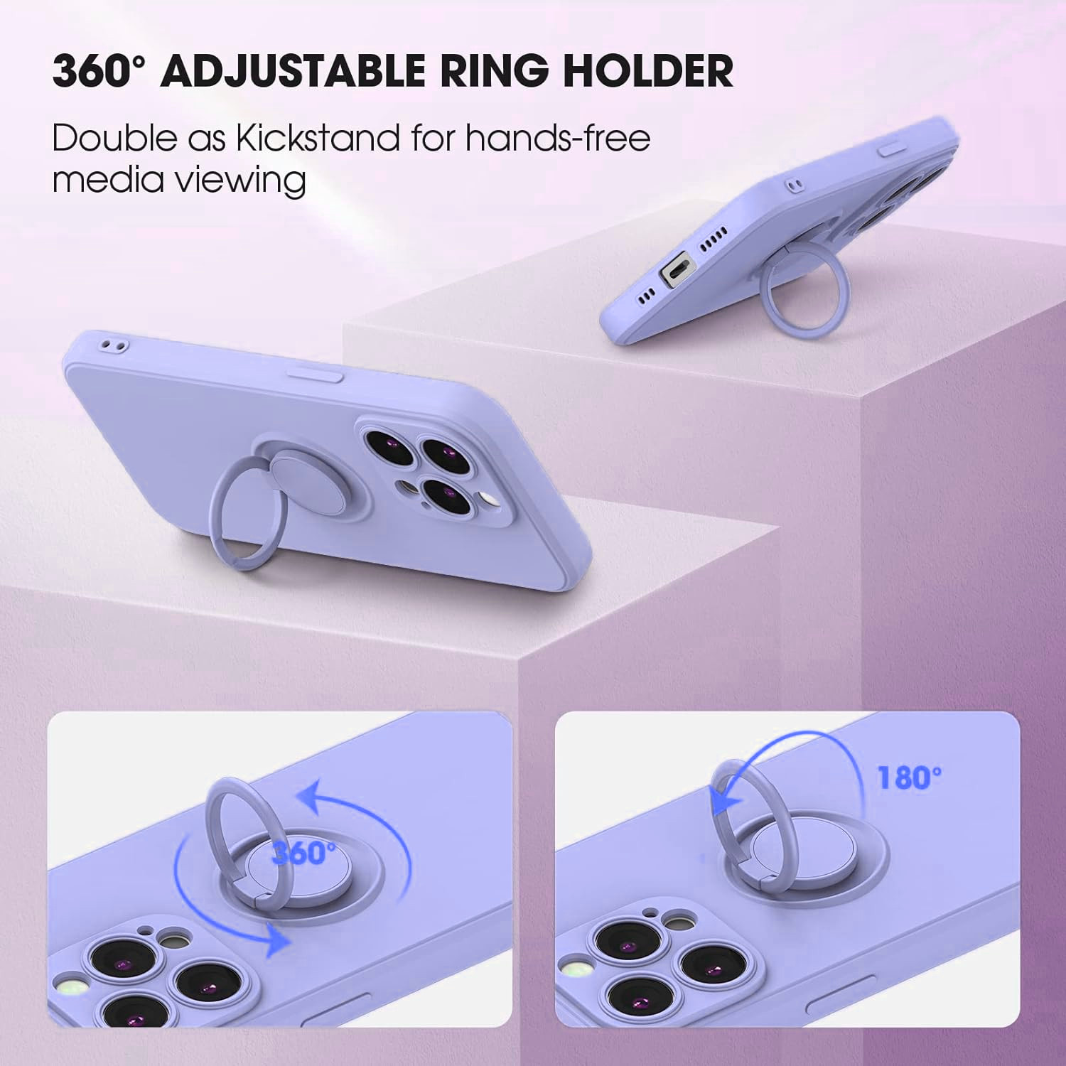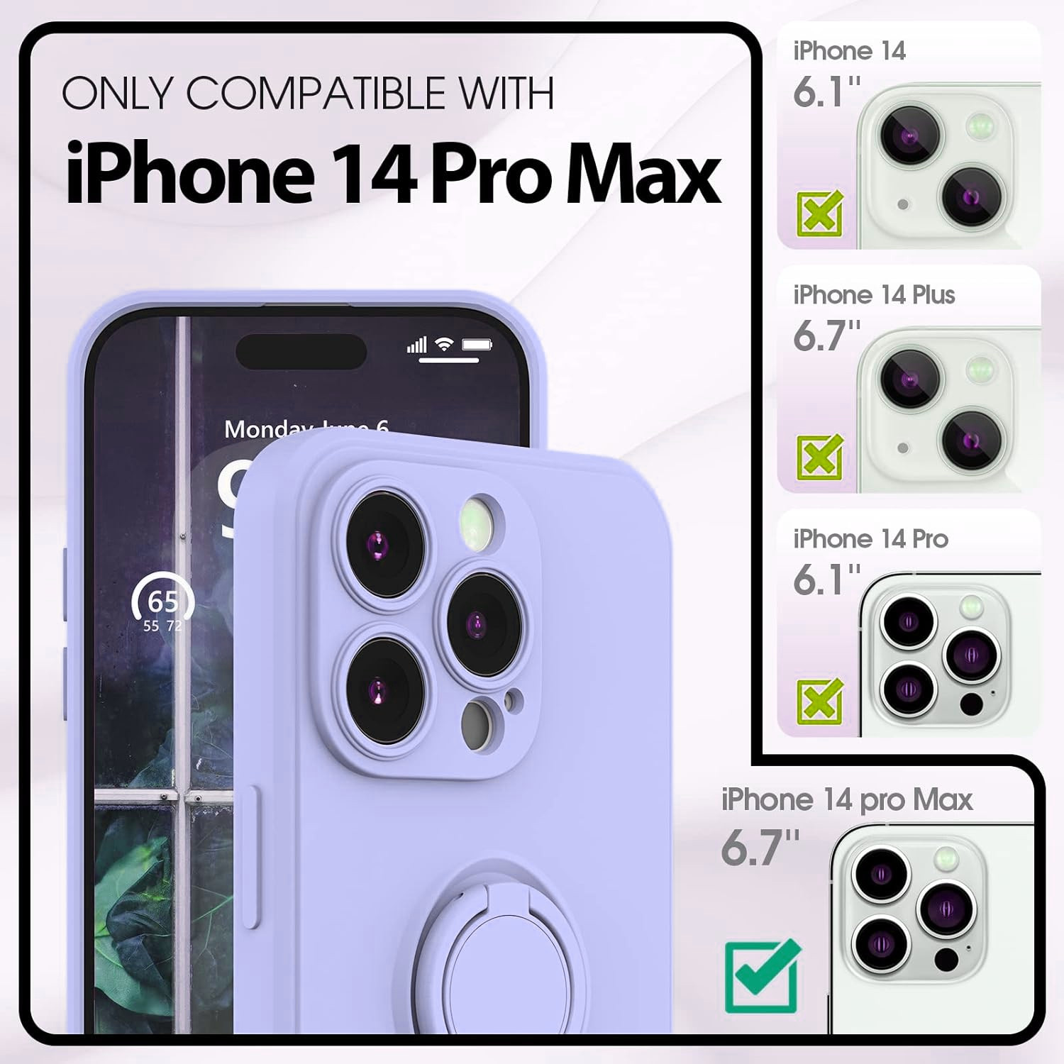 Libellé Coque Silicone Pour iPhone 14 Pro Max Couleur Violet Avec Anneau Support + Verre Trempe Protection Ecran Little Boutik®