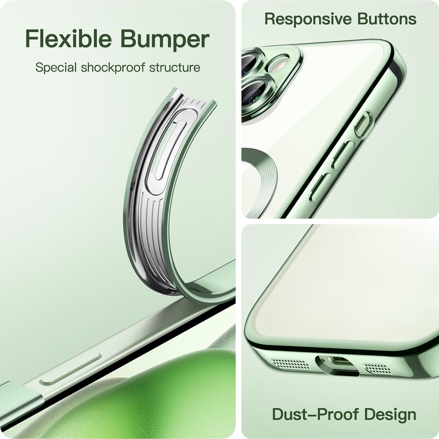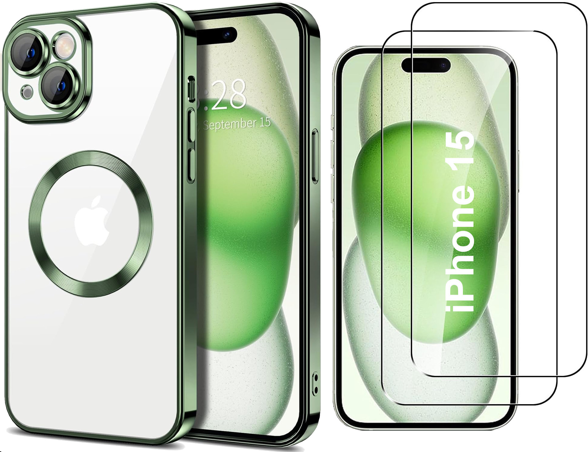 Contenu du Paquet: Coque Compatible Magsafe Couleur Vert Pour iPhone 15 + 2 Protections Ecran Little Boutik