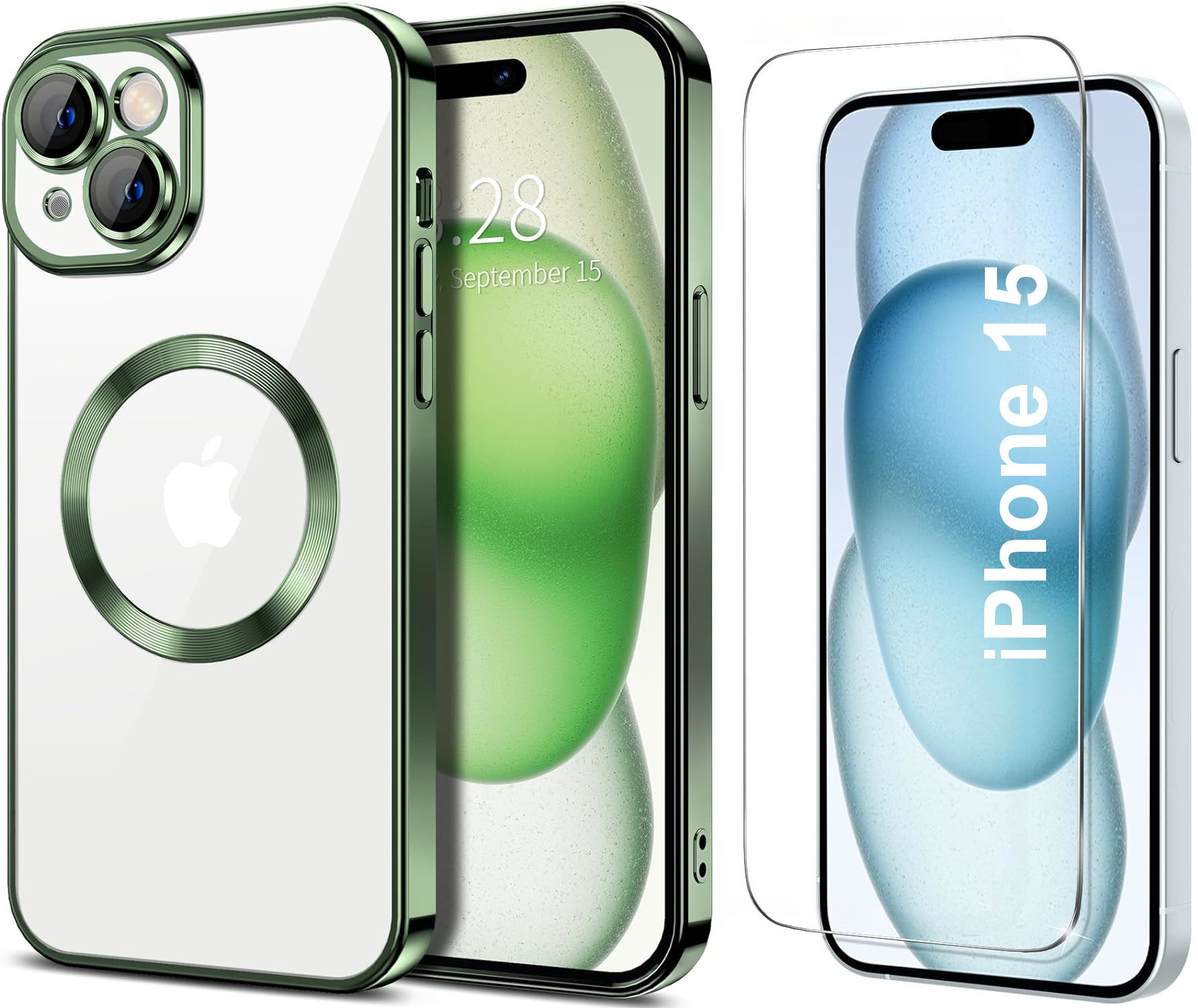 Contenu du Paquet: Coque Compatible Magsafe Couleur Vert Pour iPhone 15 + Protection Ecran Little Boutik