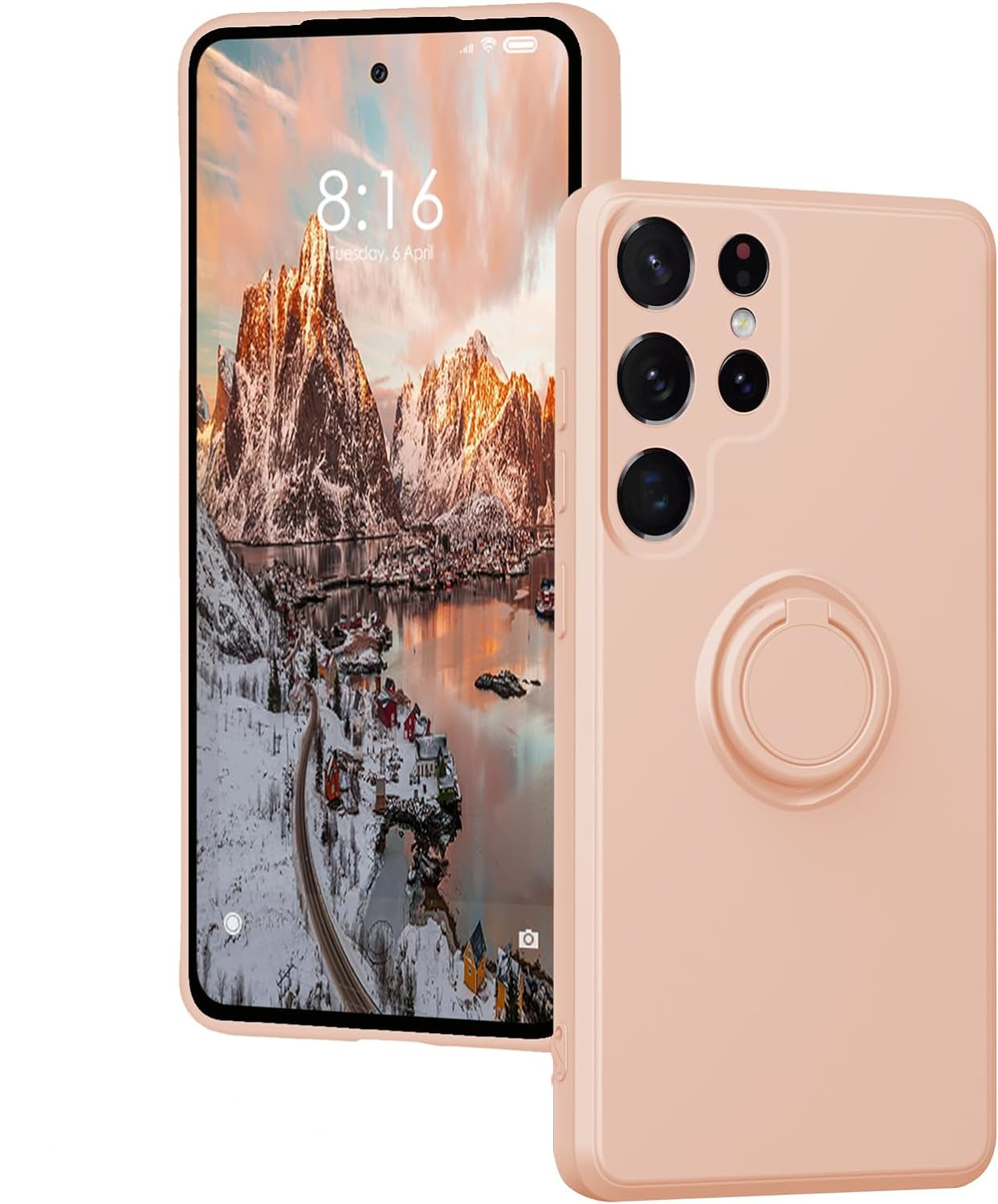 Compatible avec Samsung Galaxy S24 Ultra (cran 6,8 pouces). Coque arriere en Silicone Rigide Avec Support Anneau Couleur Rose. Marque : Little Boutik\u00a9