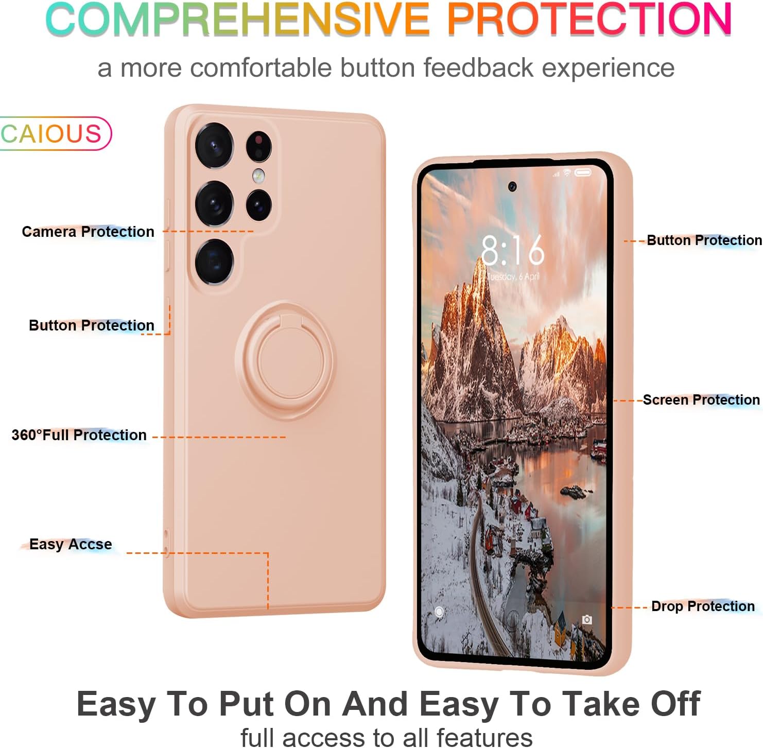 Libellé Coque Silicone Pour Samsung Galaxy S24 Ultra Couleur Rose Avec Anneau Support Little Boutik©