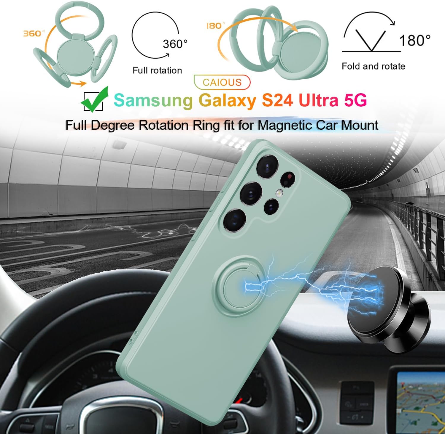 Libellé Coque Silicone Pour Samsung Galaxy S24 Ultra Couleur Vert Avec Anneau Support + Verre Trempe Protection Ecran Little Boutik©