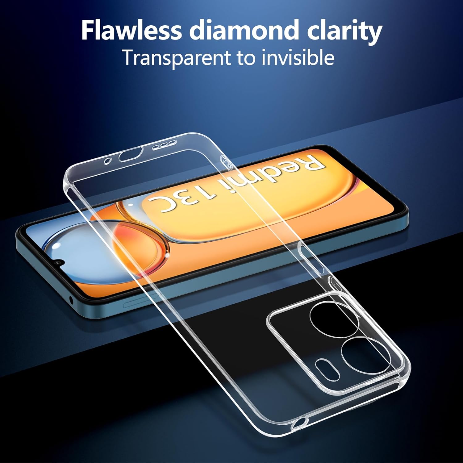 Compatible avec Xiaomi Redmi 13C / Poco C65 (cran 6,74 pouces). Pack Coque arrire en silicone souple Transparente + 2 Protections Ecran Verre avec Lingettes nettoyantes.