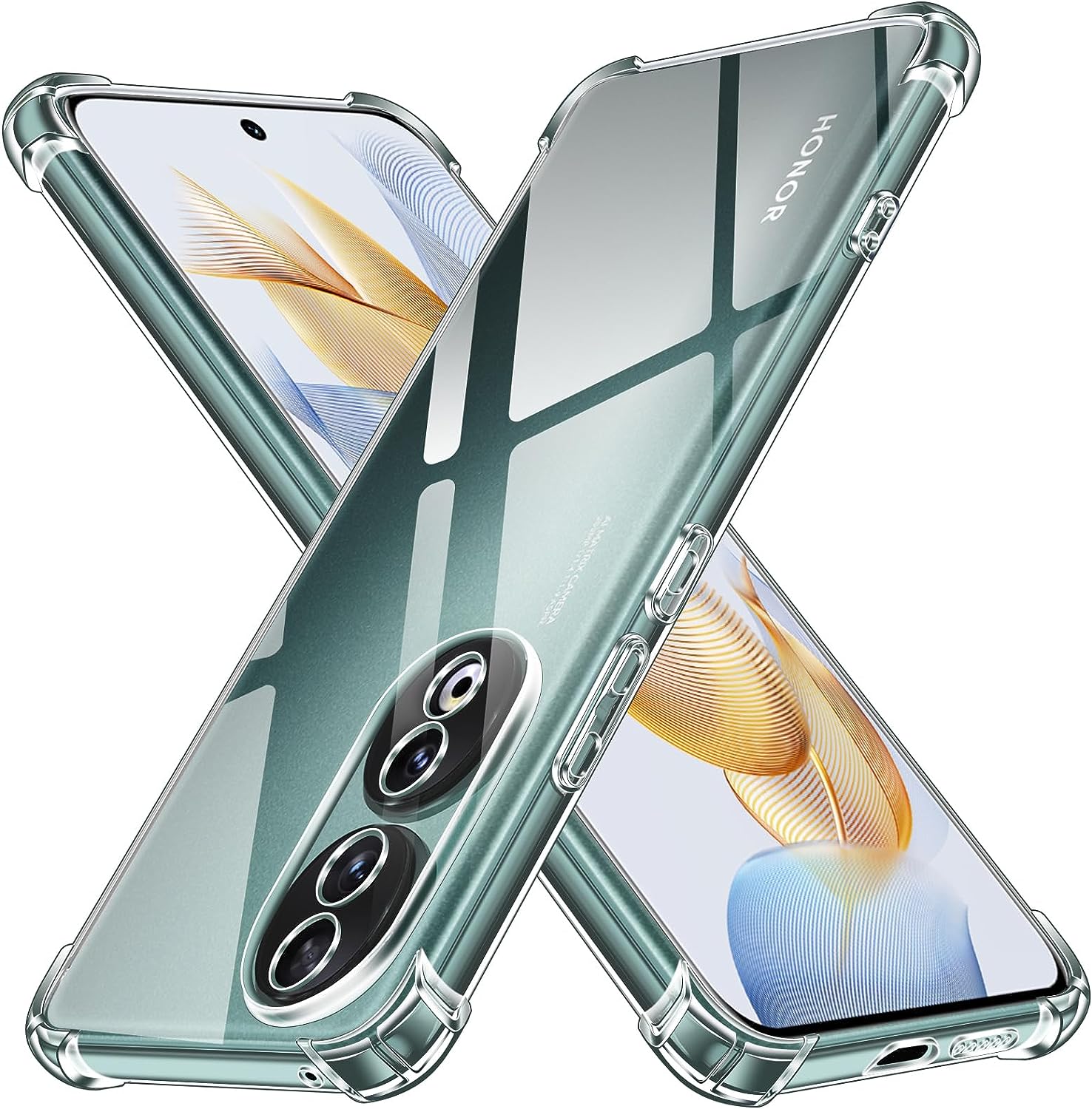 Compatible avec Honor 90 (écran 6,7 pouces). Coque arrière en silicone souple Transparente avec Protection renforcée aux 4 coins.
