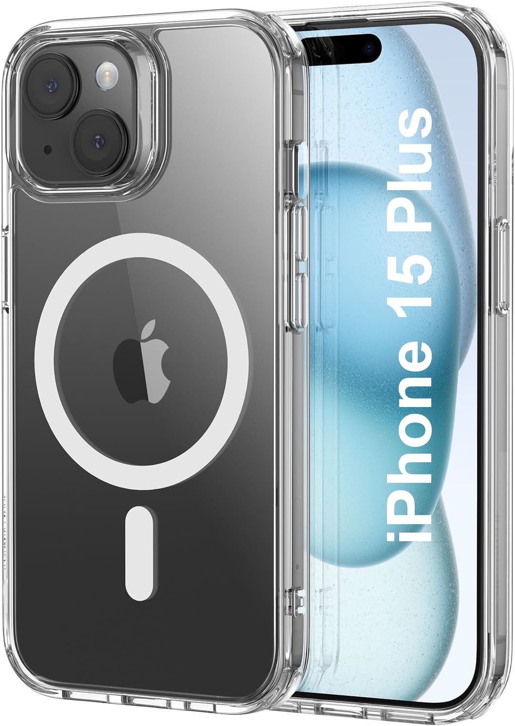 Compatible avec Apple iPhone 15 Plus (écran 6,7 pouces). Coque arrière en silicone Souple Compatible Magsafe Transparente.