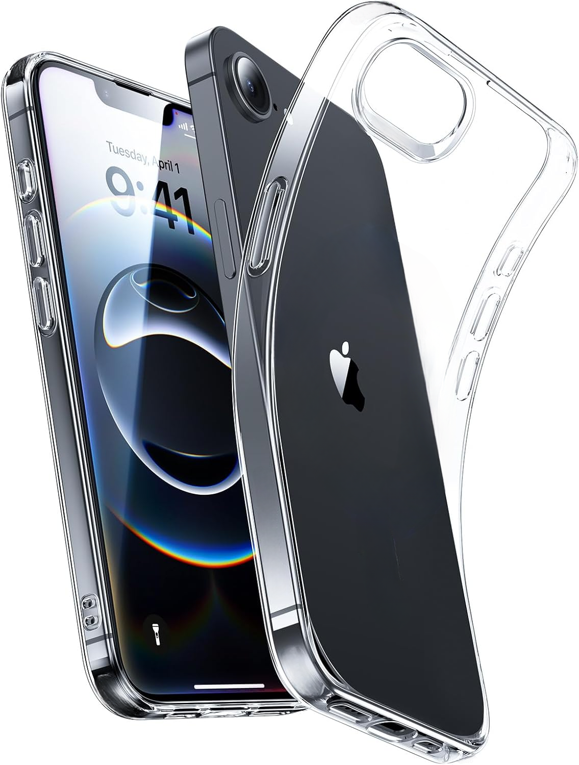 Compatible avec iPhone 16e (Ecran 6,1 pouces). Coque arriere en silicone souple Transparente Marque : Little Boutik