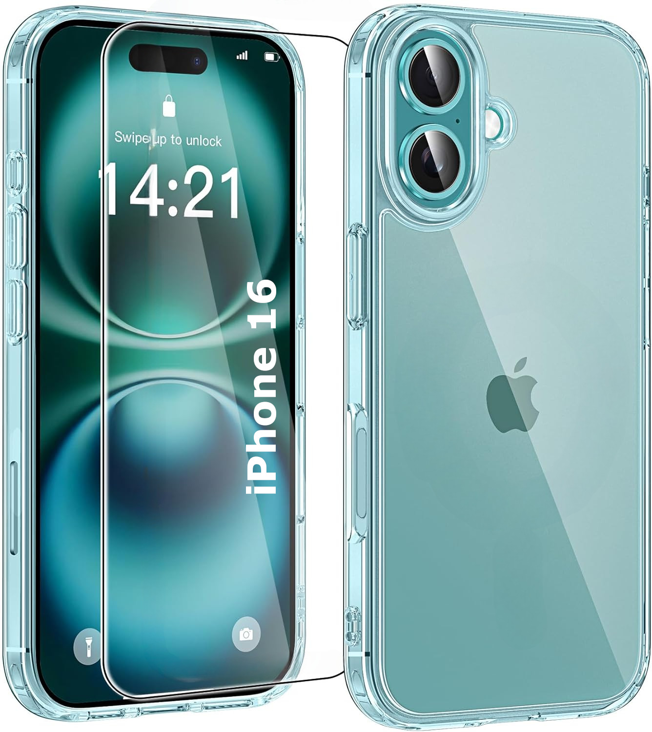 Compatible avec Apple iPhone 16 (écran 6,1 pouces). Pack Coque arrière en silicone souple Transparente + Protection Ecran Verre avec Lingette nettoyante.
