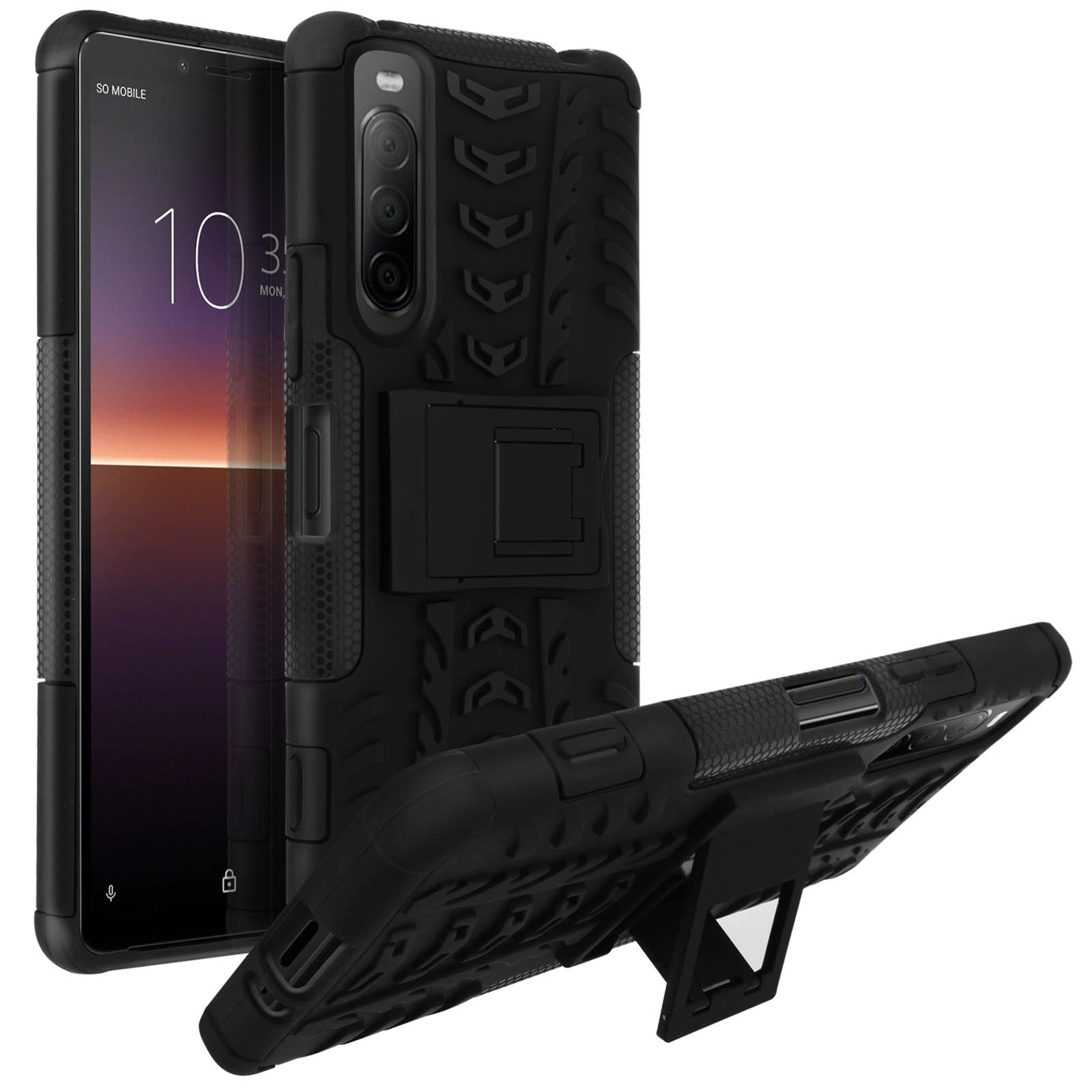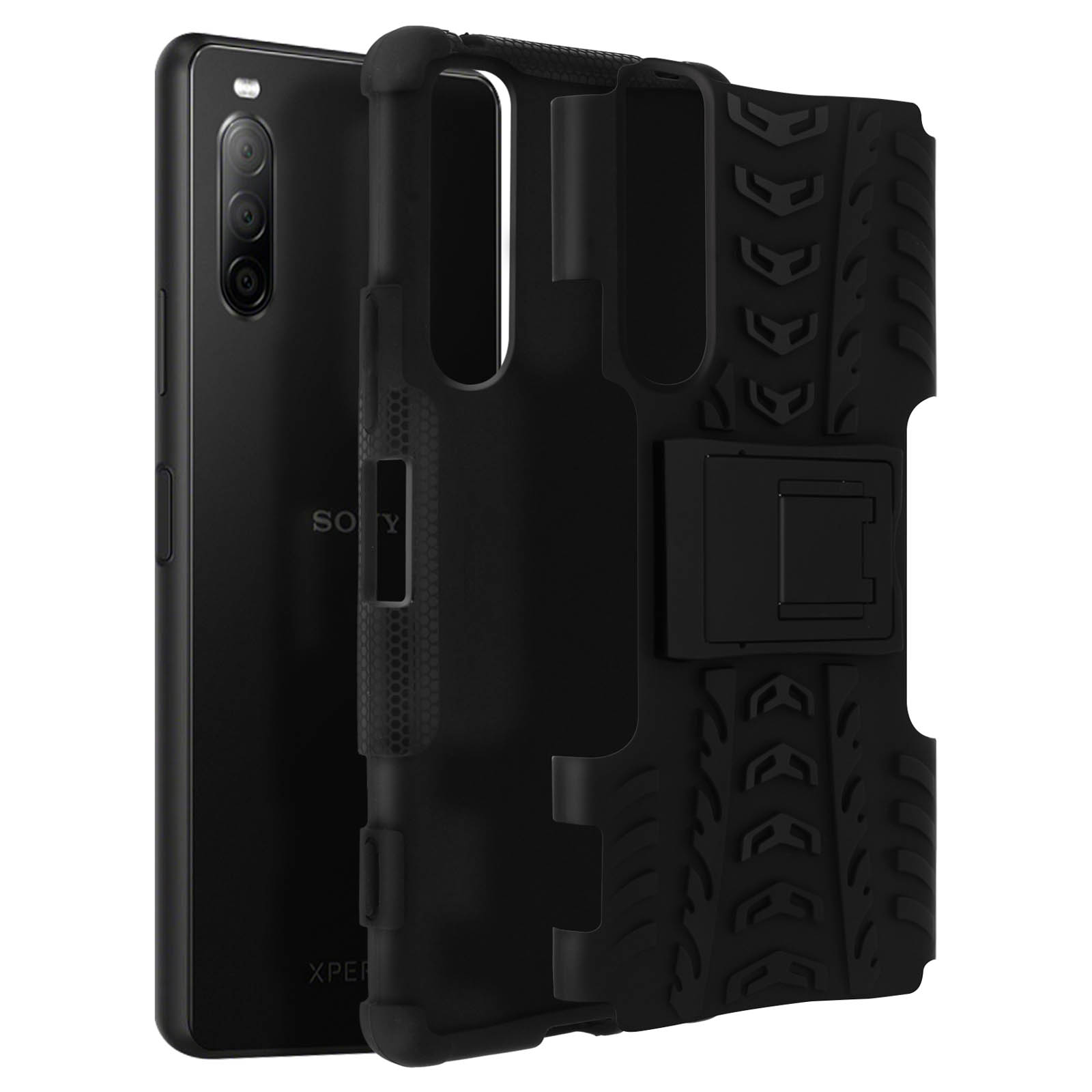 Coque Sony Xperia 10 II Protection Bi-matière Antichoc Béquille Support Noir