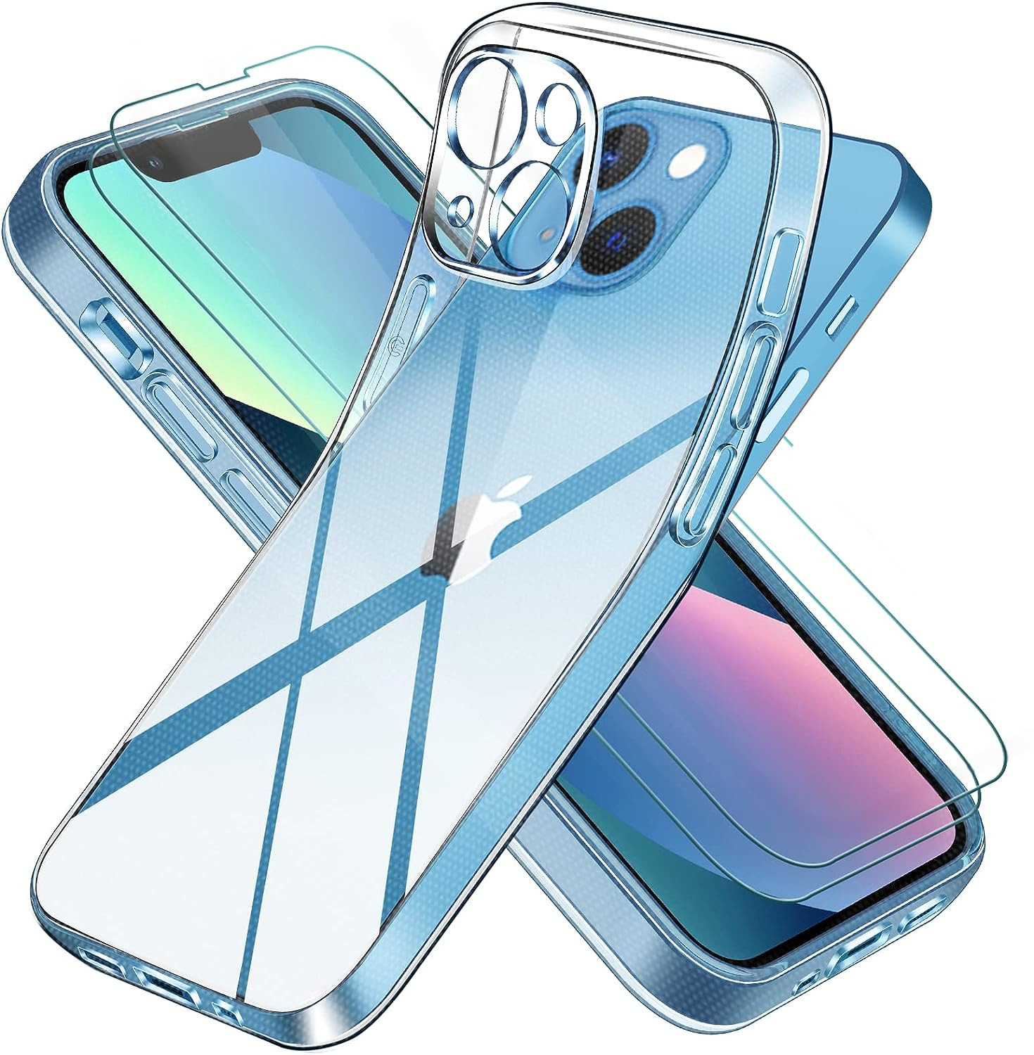 Compatible avec iPhone 13 Mini (écran 5,4 pouces). Pack de 1 Coque arrière en silicone souple Transparente + 2 Verres Trempé avec Lingettes nettoyantes.