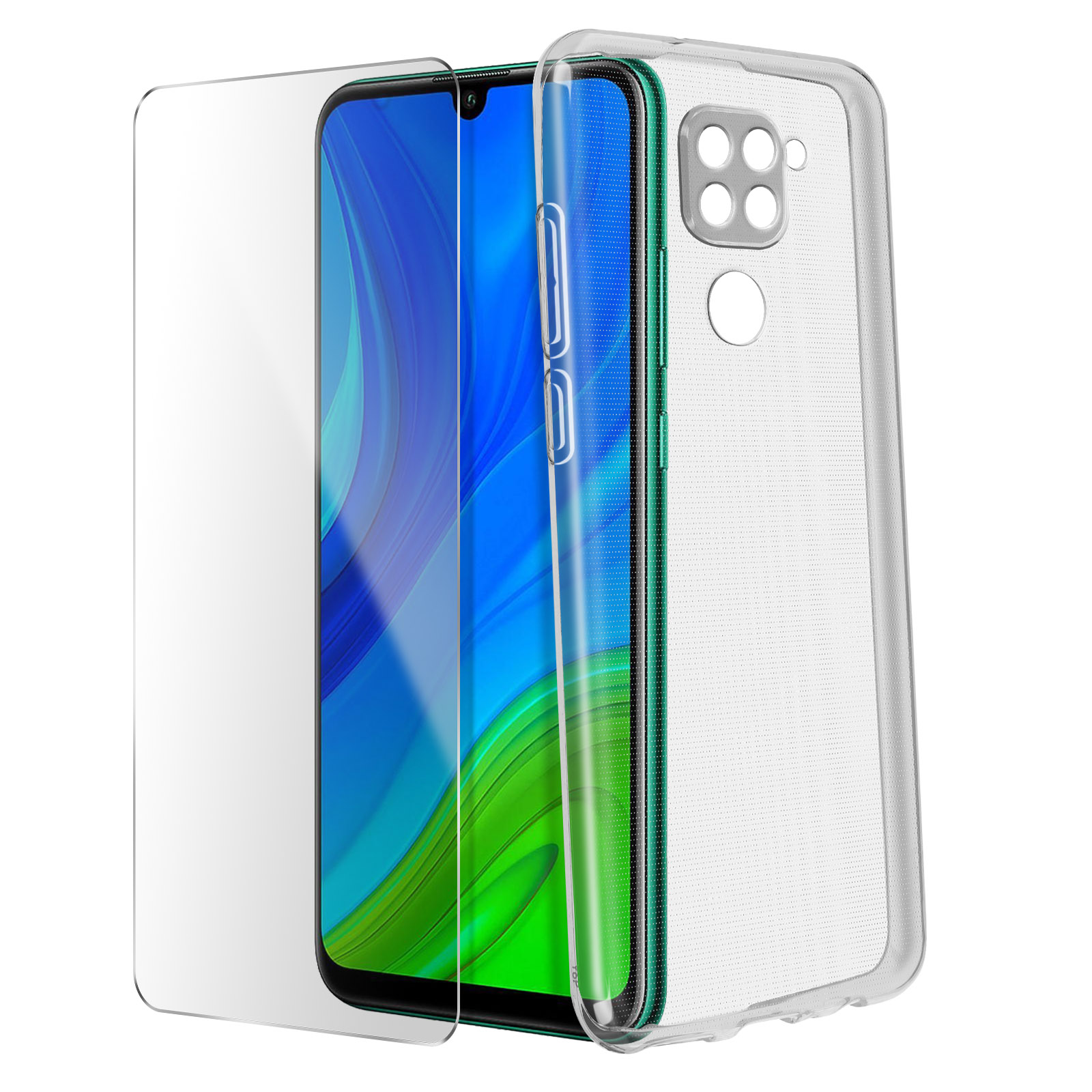 Pack protection Xiaomi Redmi Note 9. Coque transparente en silicone gel qui protège des chocs et rayures tout en laissant le design du mobile visible. Film protège écran en verre trempé ultra-résistant. Bords Biseautés. Fonctions accessibles.