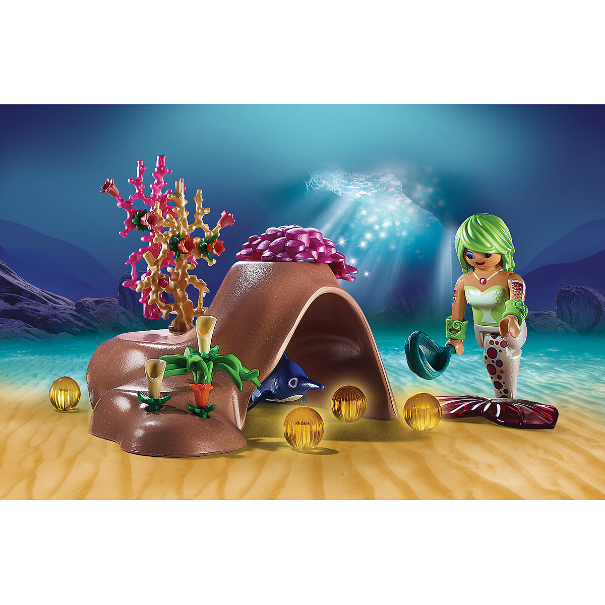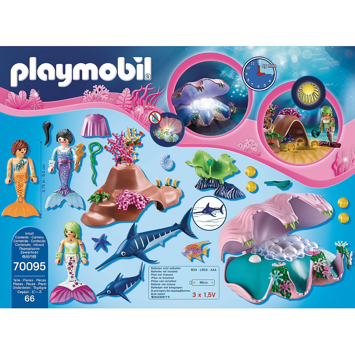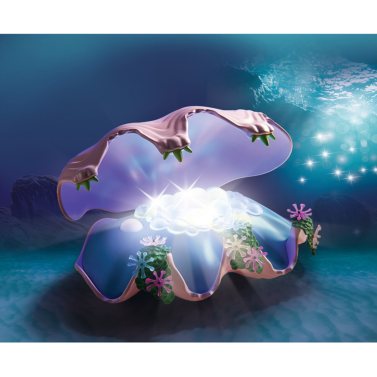 De magnifiques perles sont précieusement cachées à l'intérieur du coquillage. Heureusement, les sirènes protègent ce coquillage, qui a une valeur inestimable... Peut être utilisé comme une veilleuse pour jouer et s'endormir ! La lumière du coquillage en nacre change de couleur (nécessite 3 piles AAA de 1,5 V non fournies) et séteint automatiquement au bout de 15 minutes. Avec des perles luminescentes à collectionner et de nombreux accessoires.
