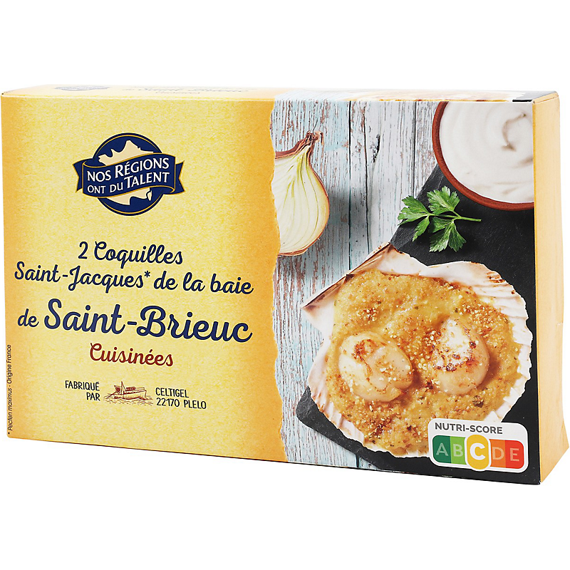 2 COQUILLES SAINT-JACQUES (Pecten maximus, origine France) CUISINÉES - SURGELÉES NOS REGIONS ONT DU TALENT