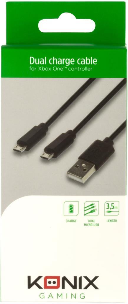Caractéristiques techniques : - Ce cordon permet de charger deux manettes Xbox One simultanément. La longueur du câble vous permet de recharger vos manettes tout en continuant vos sessions de jeu. - Cordon de charge USB > Double micro USB - Longueur totale du câble : 3,5 m (le câble se divise en deux).