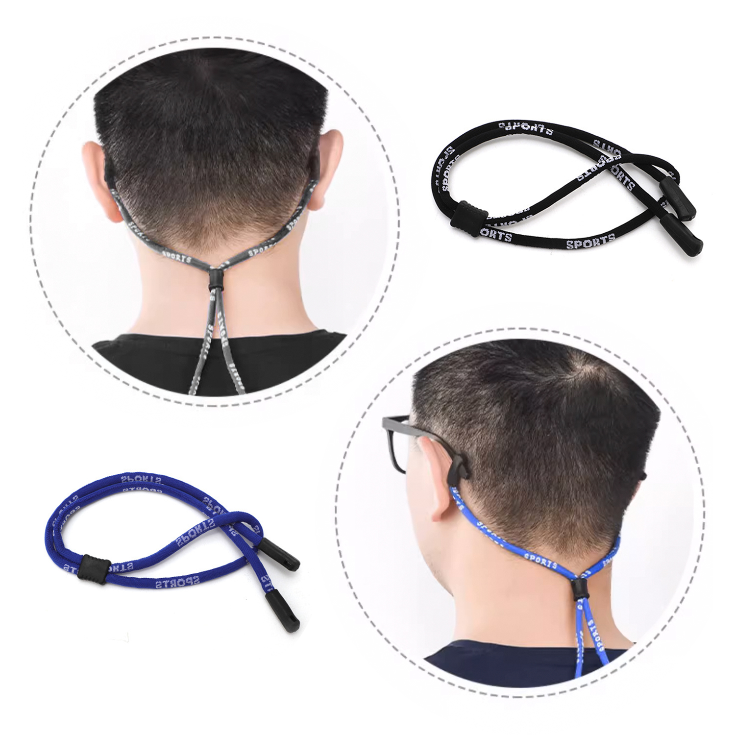 Libellé Cordons de lunettes réglables, sangles de sport noir/bleu, pack de 2