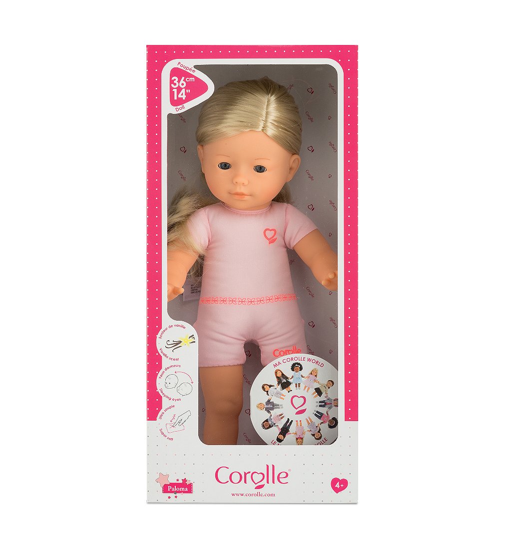 Poupée à habiller de 36cm au corps souple "effet" sous-vêtement avec de longs cheveux faciles à coiffer. Personnalisez Paloma avec près de 100 vêtements et accessoires. Son visage, ses bras et ses jambes, à la délicate senteur de vanille, sont en vinyle doux au toucher. Son corps souple la rend facilement manipulable. Avec ses yeux dormeurs, elle dort quand on la couche sur le dos. ma Corolle : Ma poupée, Mes histoires ! Dès 4 ans.