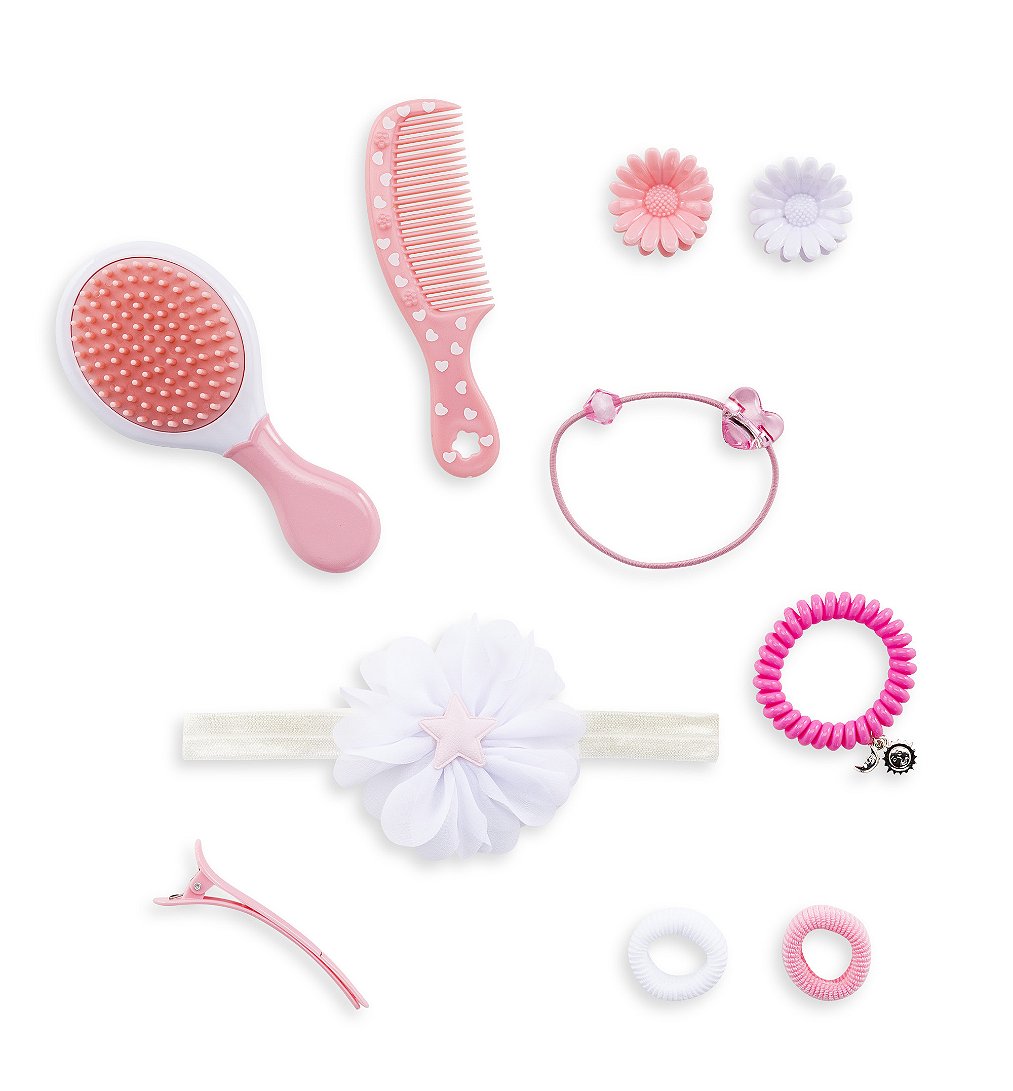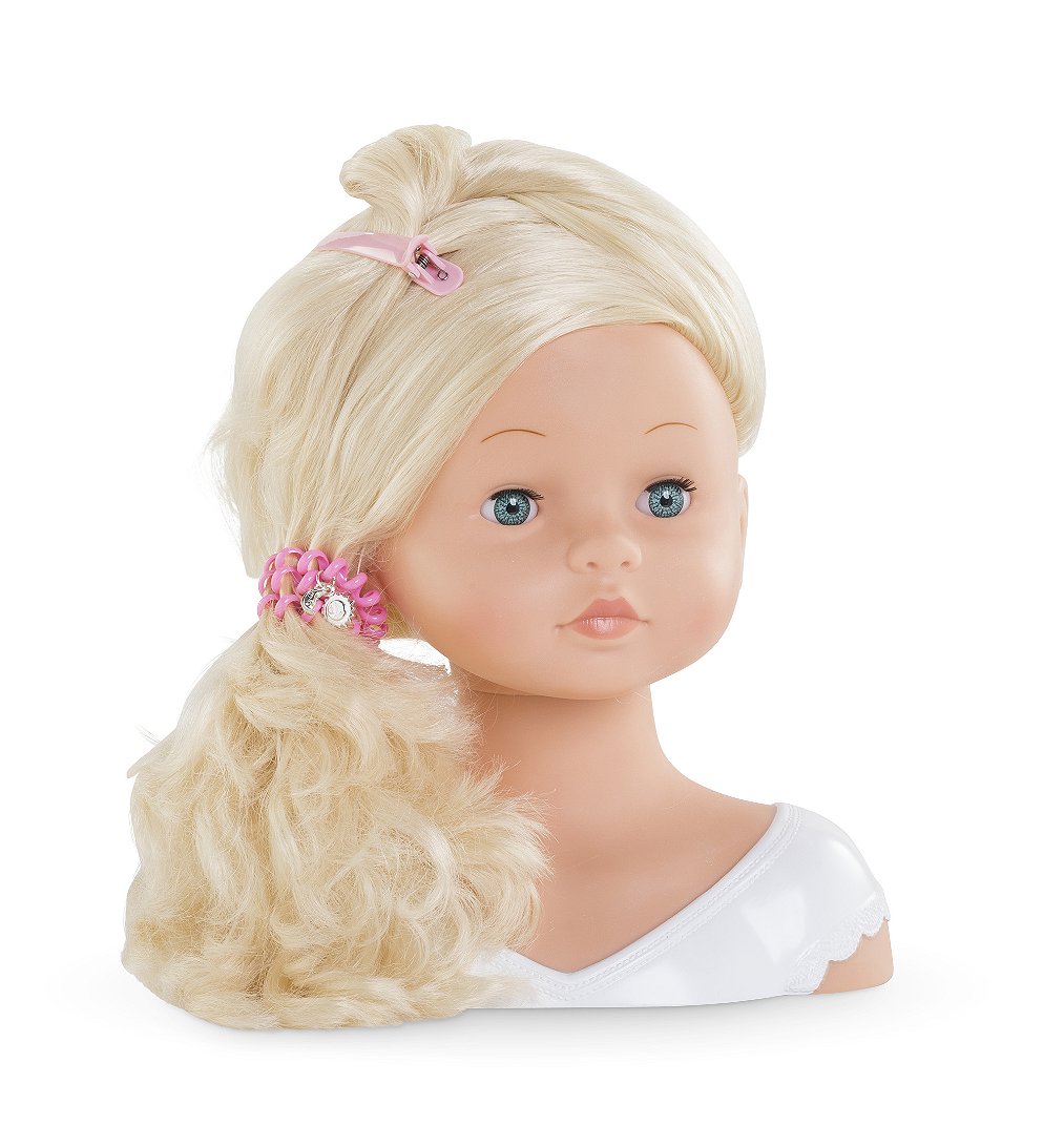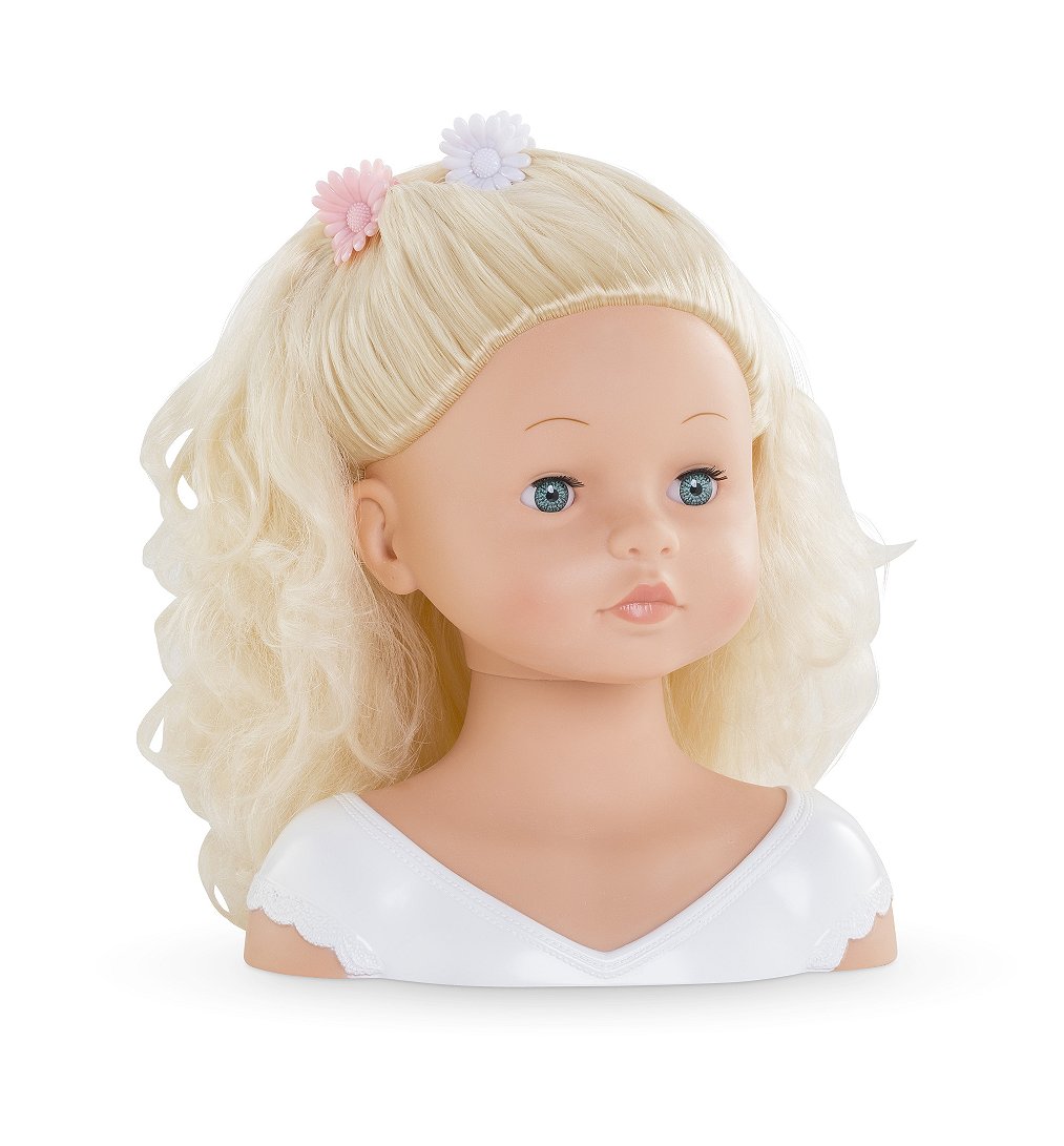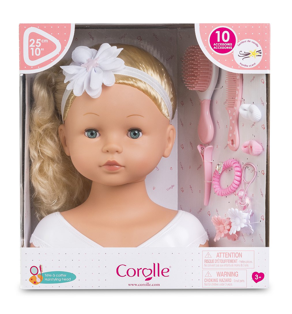 La Tête à Coiffer possède 10 accessoires réalistes (1 bandeau élastique blanc avec 1 fleur, 1 brosse à cheveux, 1 peigne, 2 pinces à griffes, 1 pince à cheveux plate, 1 élastique avec un cœur, 1 élastique à spirale et 2 chouchous) pour créer de nombreuses coiffures ! Les cheveux de la tête à coiffer sont implantés de manière régulière pour permettre un rendu le plus naturel possible. La Tête à Coiffer est en vinyle doux au toucher à la délicate senteur de vanille. Les yeux sont fixes avec des cils. Le Coffret Coiffure Corolle complète parfaitement la Tête à Coiffer pour passer des heures à imaginer toujours plus de nouvelles coiffures ! Coiffer, c’est jouer. Dès 3 ans.