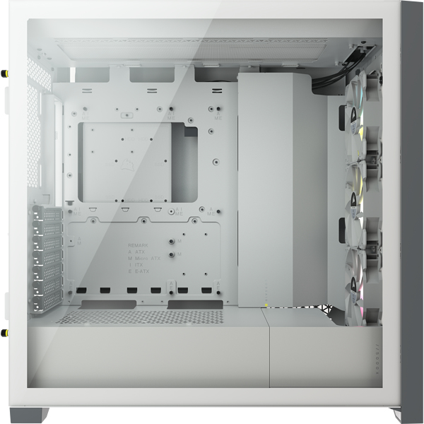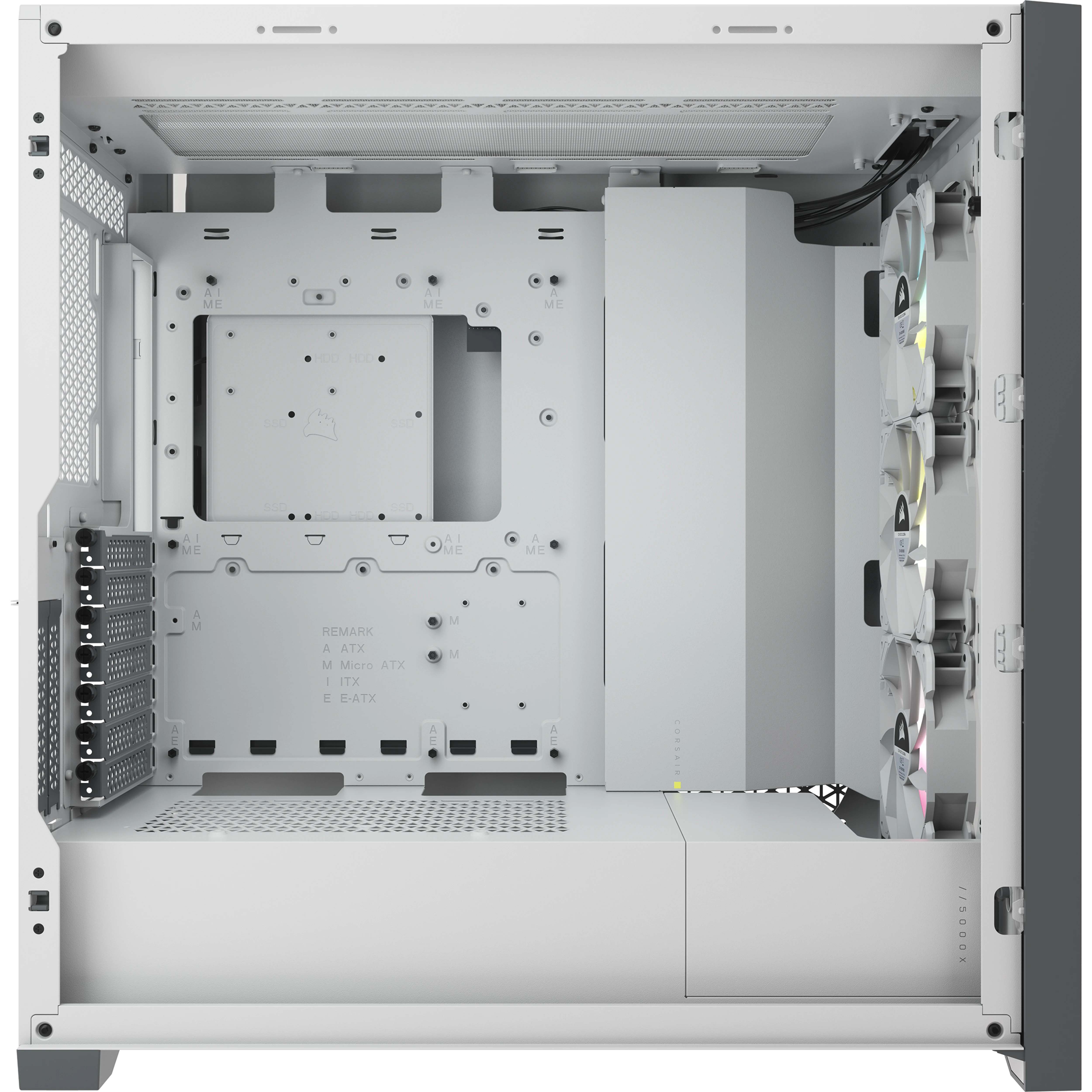 Corsair iCUE 5000X RGB. Format: Midi Tower, Type: PC, Couleur du produit: Blanc. Emplacement d'alimentation: Bas, Facteurs de forme d'alimentation pris en charge: ATX. Ventilateurs installés avant: 3x 120 mm, Prise en charge des diamètres des ventilateurs avants: 120,140 mm, Pris en charge des diamètres des ventilateurs latérals: 120 mm. Tailles de disques durs supportées: 3.5", Facteur de forme SSD: 2.5". Largeur: 245 mm, Profondeur: 520 mm, Hauteur: 520 mm