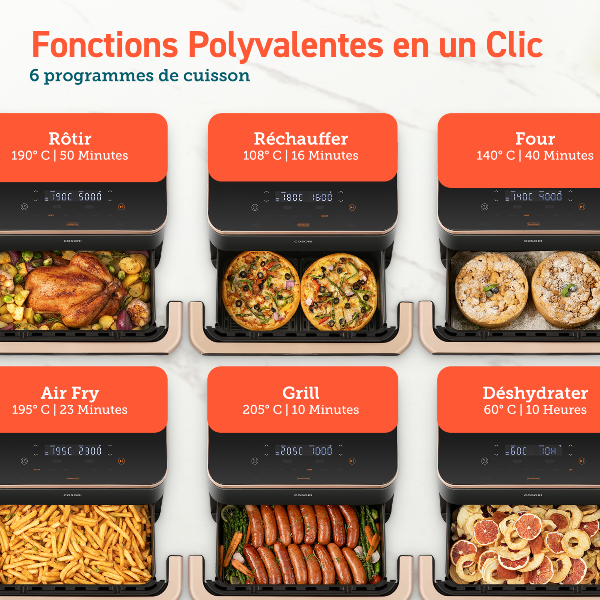 | Libellé | COSORI Friteuse sans huile double panier Dual Blaze Twinfry™ Chef Edition avec une capacité de 10L |
