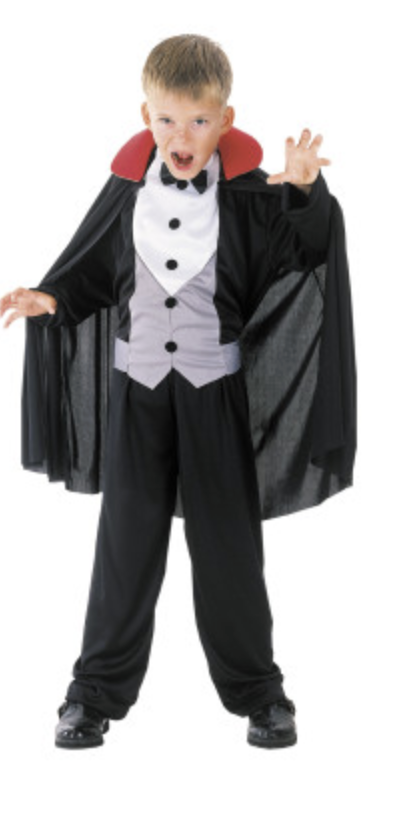 Costume halloween vampire 10/12 ans : cape-col, plastron trompe l'oeil