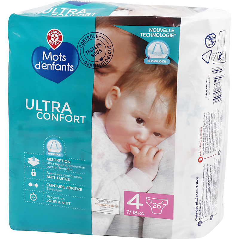 Couches Ultra Confort Maxi Taille 4 - 7/18kg x26 - MOTS D'ENFANTS