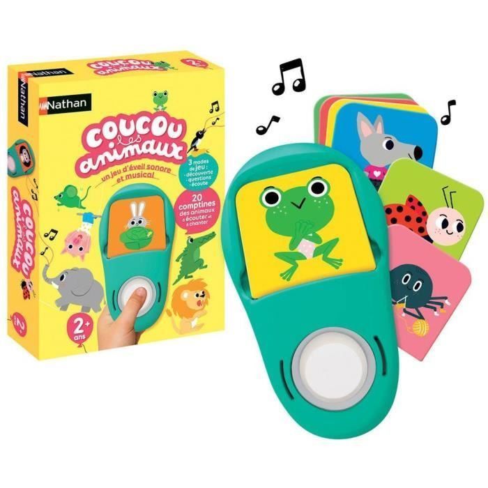 De la petite fourmi au gros éléphant, 20 comptines à écouter et à chanter encore et encore! En mode découverte, l'enfant appuie sur le bouton et écoute la comptine : "Petit escargot porte sur son dos sa maisonnette…" En mode questions, le jeu demande : "Je suis verte et je cours dans l'herbe, trouve-moi!" L'enfant cherche la carte : "Une souris verte..." Un jeu d'éveil musical adapté aux petites mains. Avec 3 modes de jeu.