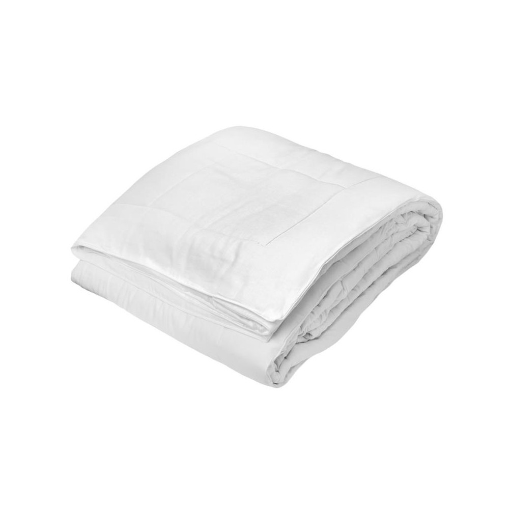 Couette blanche soie idéale en mi-saison, alliage entre la chaleur et l'effet gonflant deplumes et la douceur du satin 100% coton Régulateur thermique Naturel Composition : satin 100% coton Garnissage : 380g/m2 Finition : piquage carreaux avec cadre - passepoil Le standard 100 OEKO-TEX garantit l'absence de substances nocives utilisées dans la teinture et le traitement du textile, c'est un système d'essias et de certification uniformisé à l'échelle mondiale pour tous les produits textiles qui offre la sécurité aux consommateurs.