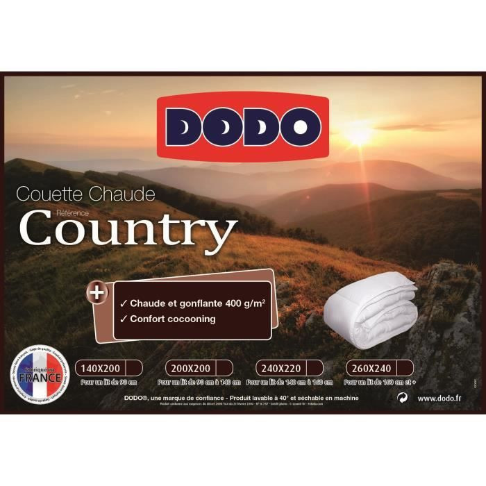 | Libellé | Couette chaude Country 400g-m² Dodo - Confort et fabrication française |