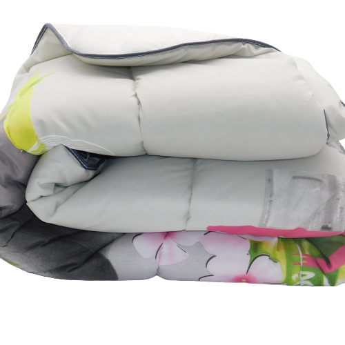 Couette 140x200 Tissu Microfibre imprimé Zen sur les 2 faces Garnissage 450g/m² de fibre Polyester Coins ronds-Double piquage-Biais polycoton couleur Fabrication Française par MORTREUX SAS