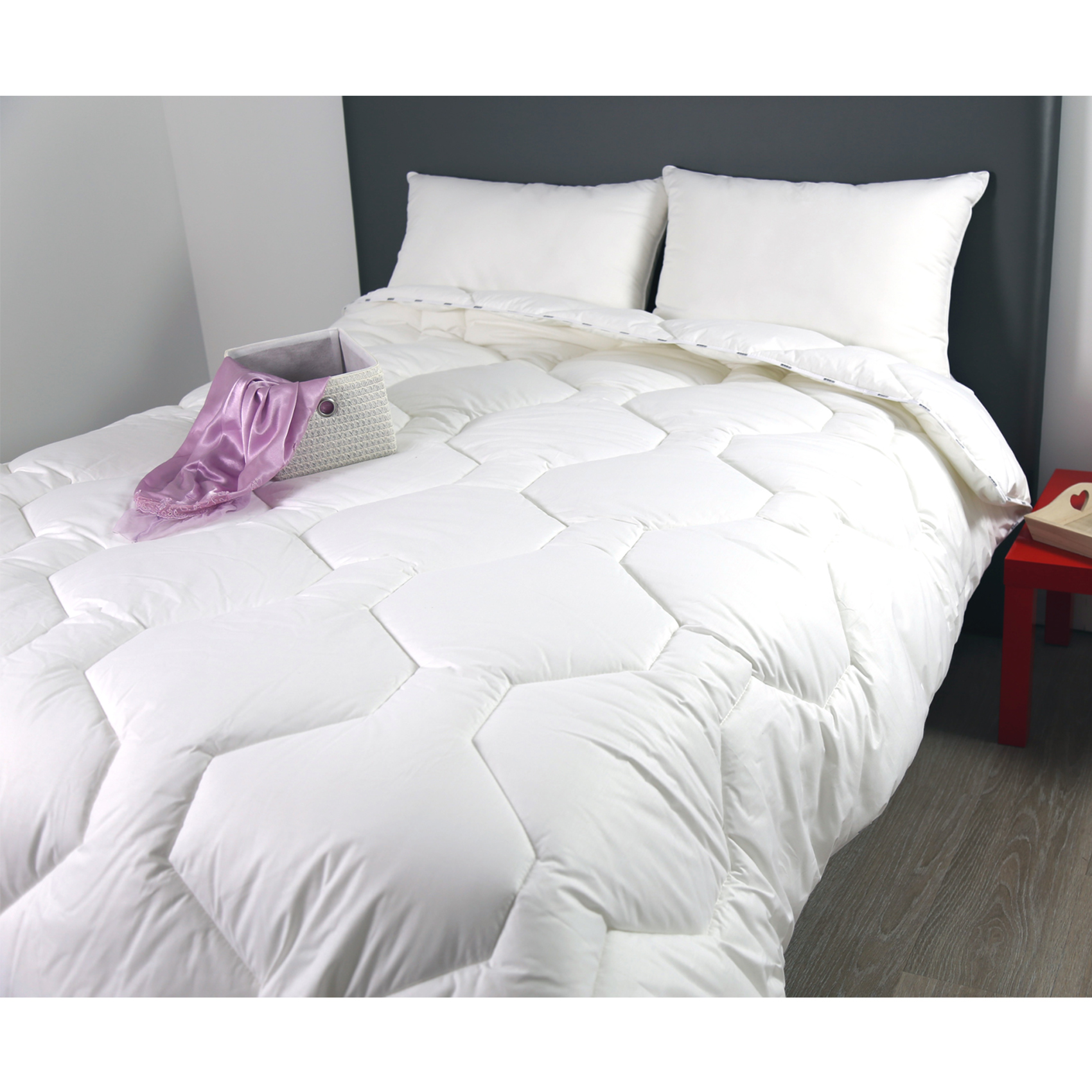 Cette couette chaude PRONEEM de la marque DODO en coloris blanc est douce et confortable. A base d'huile de Neem qui est anti-acariens, non irritant, hypoallergénique et aux actifs 100% biodégradables. Cette couette chaude est idéale pour les chambres dont la température se situe entre 15 et 18°C. Vérifiez la capacité de votre machine - Programmez un essorage réduit - Le produit est séchable en machine à température modérée - suivez les instructions sur la vignette d'entretien. Caractéristiques:. Dimension : 140 x 200 cm, 220 x 240 cm et 240 x 260 cm. Couleur : blanc. Compositions : enveloppe : 100% coton traité anti-acariens PRONEEM et garnissage : 100% polyester fibre creuse siliconnée. Poids : 400g/m² .  . Vendue à l'unité