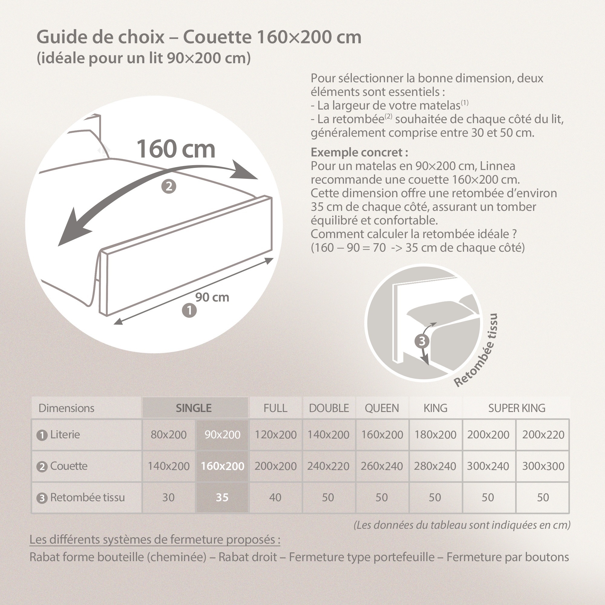 | Tailles (textile déco) | 160 x 200 cm |