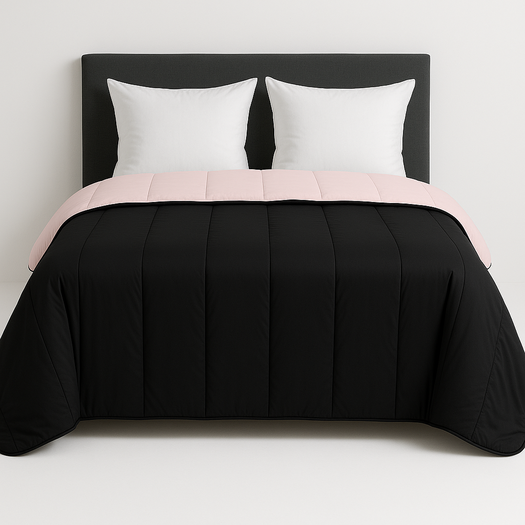 Couette légère noir / rose - 2 personnes 240 x 260 - spécial été - mortreux